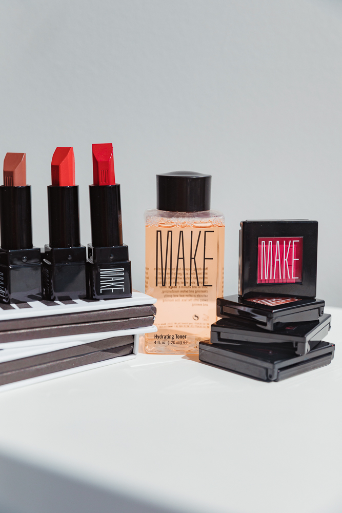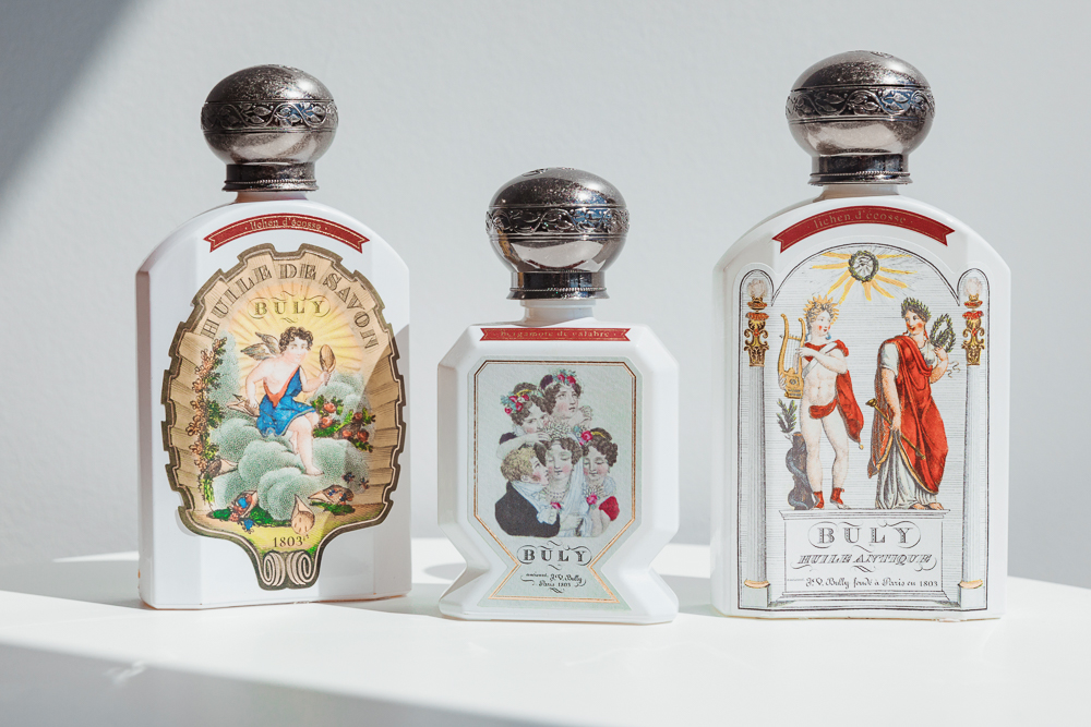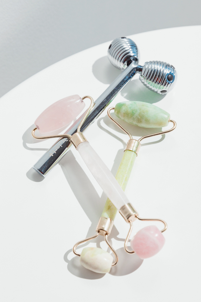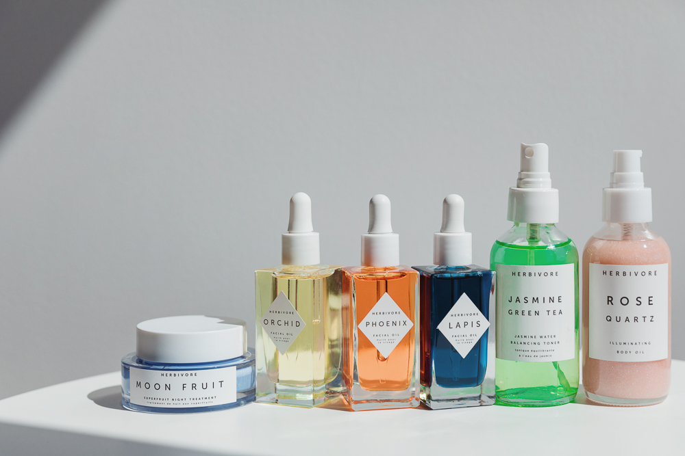 Products photographed: Susanne Kaufmann skincare and bath, Claus Porto bar soap, Fenty Beauty Match Stix, Dr. Jart Solution Masks, Make makeup, Herbivore skincare, Shiseido Waso, Biologique Recherche serums, Herbivore and Dr. Jart face rollers, Yves Durif tools, Kevin Murphy hair products, Buly fragrance, Lano creams, Dior Lacquer Plump Lipsticks, Tom Dixon candles, Louis Vuitton fragrance.