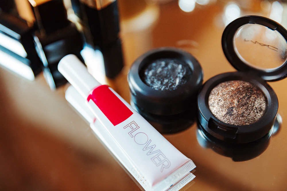 I don’t mind a full brow on other people, but on me, when they’ve tried to really fill it in and give me that presence, I feel like two caterpillars crawled onto my face and croaked. I just tweeze my brows—no pencil. I go to the same woman who does my falsies lashes and tweezes, every three weeks. I get my lashes done at Beautiful Soul in NoMad by Soul Lee because I can’t wear mascara. I smear it all over my face and end up looking like Heath Ledger’s the Joker, even when they say it doesn’t budge. If I have an event to go to, I’ll just dip a brush in one of these MAC things, this one is Gilt by Association and the silver one is Cinderella [Ed note: discontinued]. They’re amazing, but they’re [old]. I just put a little metallic black on the lid and pat it on. If I’m going to anything with photographers, I use Glam Squad. I’m very fast because I don’t want anything on my cheeks, or brows. Bronzer has never touched my face. They’re done with me quickly.