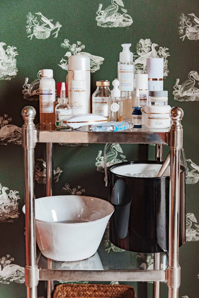 I was always super into skincare. My mother always made me use lotion from a young age. Nothing serious—just Lubriderm. And I remember my sister did a science project one year on the skin of nectarines. She moisturized each one with a different moisturizer and watched, and I’m not kidding you, six of them from the same batch looked completely horrendous after a month, and the one with Lubriderm on it was perfect. I will never forget that—I just thought, ‘Oh, there really is something to taking care of skin that makes sense.’ That stuck with me, and when I was in Mammoth, I found this aesthetician program in Reno—which was a 3-hour commute—and thought that I would go and learn the most amazing things. But really all you do is get your license. You just learn how to make sure things are clean, sanitary, and safe. It’s up to you to further your education. Luckily, I quickly stumbled upon someone who recommended Biologique Recherche to me. It’s not just the products that make it so special. Part of their technique involves a machine that combines three electrical wave forms—galvanic, a medium frequency, and a high frequency. It really is super effective at lymphatic drainage, muscle sculpting, and is the most effective thing I’ve seen at driving product in. From there on, I was just really immersed in electricity—I really went down the wormhole.
