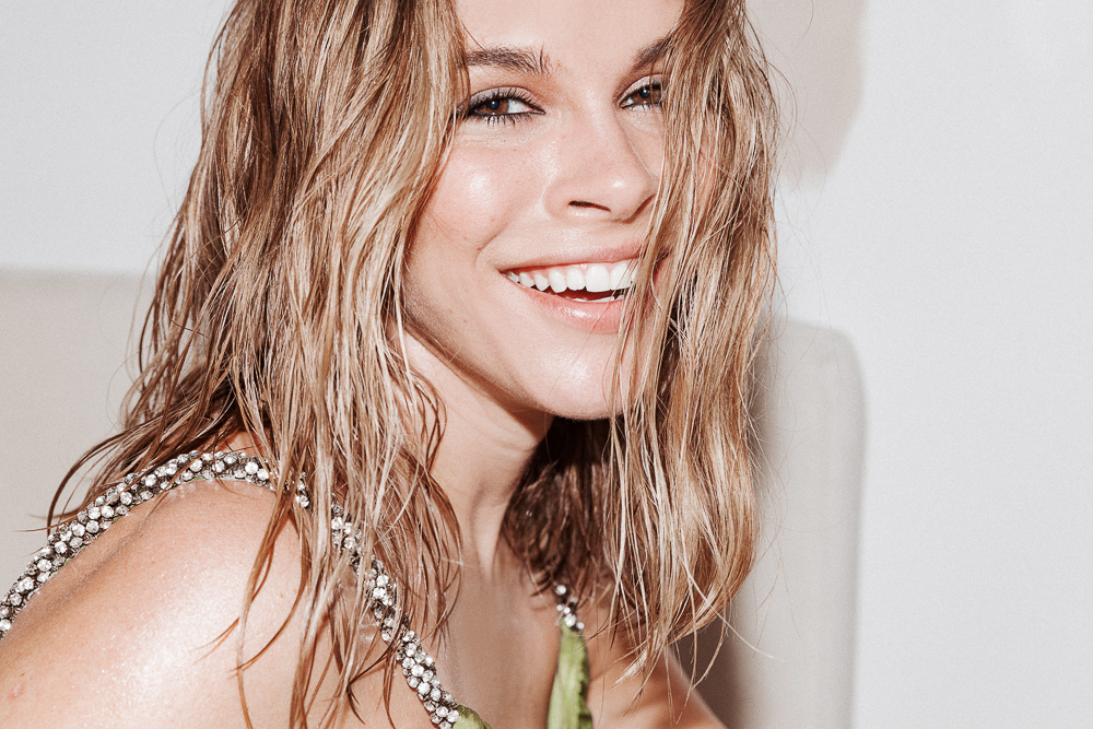 The last time I was in LA, I got this spray tan from a woman named Ana Maria—she comes to you for $75. It was great. I want to look like that again. Body Hero Perfecting Cream is formulated for this very moment—when your arms are out, your legs are out, and you want them to look sleek, svelte, glow-y, not glittery. I’m also using Topaz Haloscope on my legs and clavicle and shoulders for extra J.Lo. On my face, I put Burberry Fresh Glow bronzer—it’s liquid-y and easy to move around—on the outside of the face, the bridge of the nose, the brow bone and on my neck, because my neck is always lighter. For contouring, I stop in the hollows of my cheeks, where I have dimples. The full Kardashian is where you go all the way to the mouth with the contour shade. I don’t go quite that far.