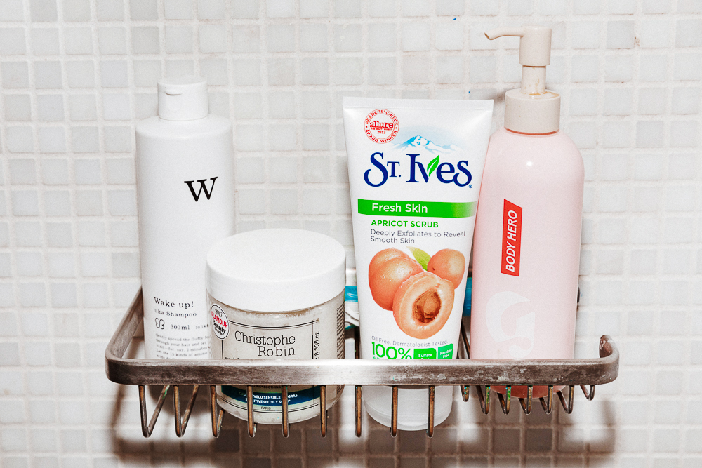 Before events, I like to use St. Ives Apricot Scrub, which I hear is very controversial. But I only use it once in a blue moon for arms, legs, and the rest of my body. I can’t help that it’s really effective! I like that it doesn’t leave any residue at all, it just rinses straight off. And it doesn’t destroy your shower with splatterings of grains everywhere. For my face, I use Milky Jelly Cleanser if I’m already wearing makeup. If I’m not, I go straight to the Tracie Martyn Amla Purifying Cleanser that I’ve been using for years. It’s very gentle, and it’s slightly foaming, but it has an acidic exfoliating property. Then when I get in the bath after, I make it as hot as I can stand. And I always do at least two pounds of Epsom salts. It makes you sweat like a maniac. It’s a workout without moving. Then I either add essential oil or a little bit of bubble bath from Santa Maria Novella. I stay in there for at least 45 minutes.