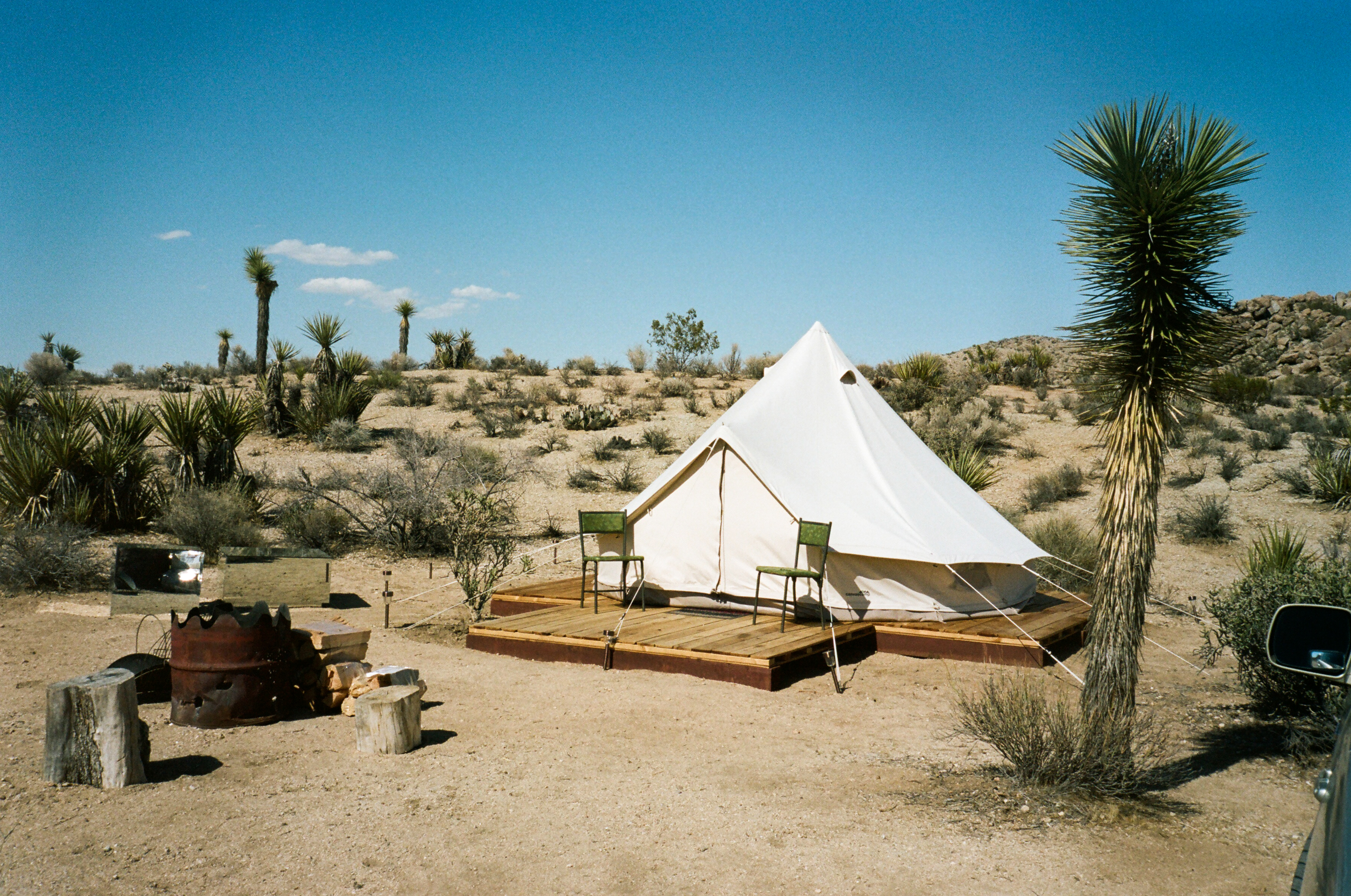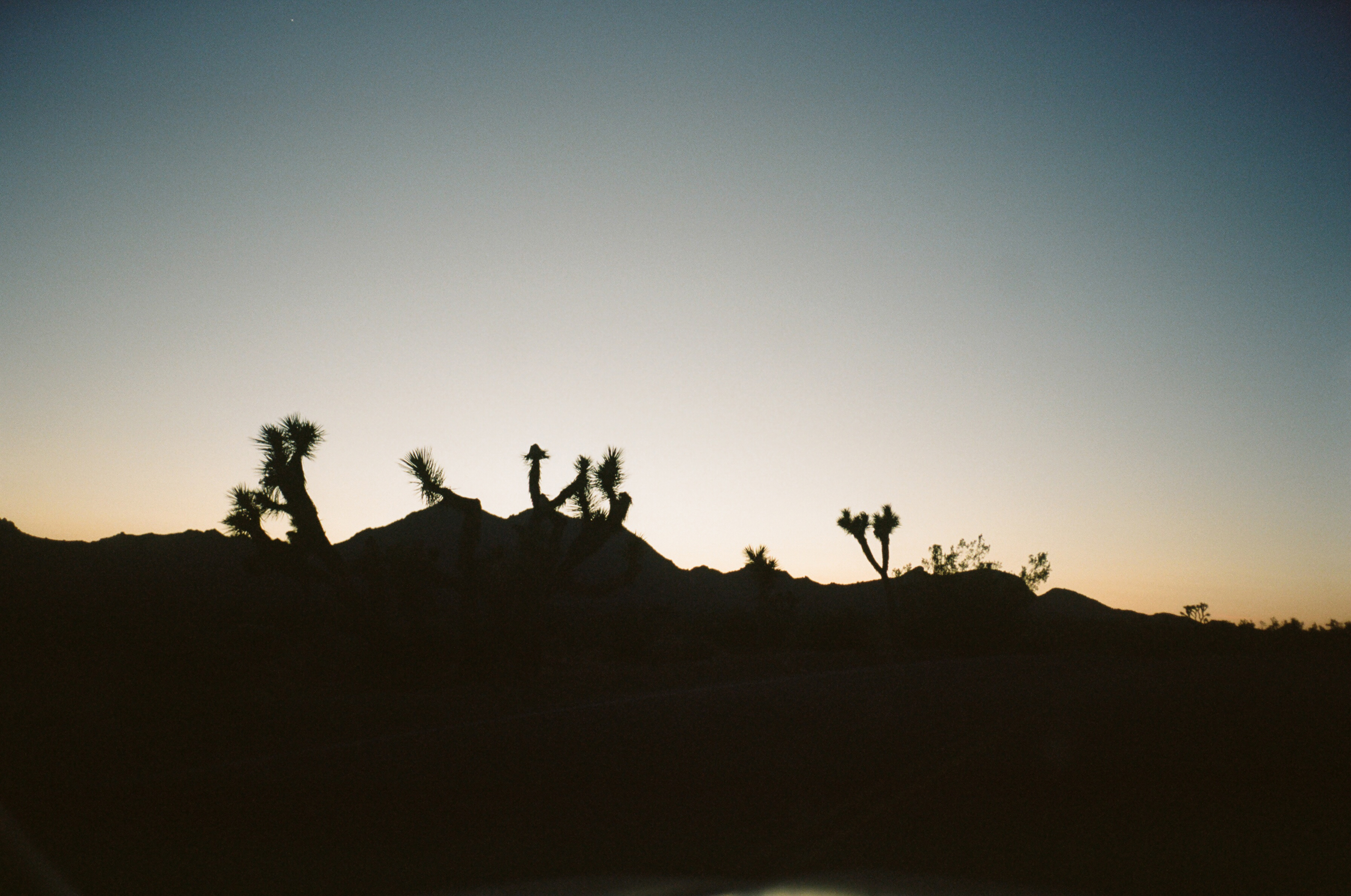 My week begins this way: a few thousand miles from home, 4:30 AM on the road into the desert. Waking up at an hour that qualifies as the middle of the night isn’t the greatest feeling in the world, but turns out if you get to the park before 7:00 in the morning, you’re not likely to see another car or another person for hours. It’ll just be you, your travel companion, and the entire place waiting for you to explore. It won’t even matter when you drive 130 miles in the wrong direction and end up at the Arizona state line by mistake, because by the time you actually realize where you are it's still not even noon. Plus, everything as far as you can see is new and stimulating and a little bit magical. David (travel companion) and I spend the whole day in our car in the sun with the windows down and our music playing loud enough to hear over the breeze which is sometimes more of a fresh gale and probably causes us chronic hearing loss. We stop anywhere we feel like it just to climb around on rocks, take photos and listen to the stillness. God knows you can’t find silence like it in New York. We have a drink and watch the sun go down near Keys View, out of the way of other tourists. We build a fire, cook dinner, and sleep like babies in a yurt ("A yurt!!"—Tom) just outside the park.