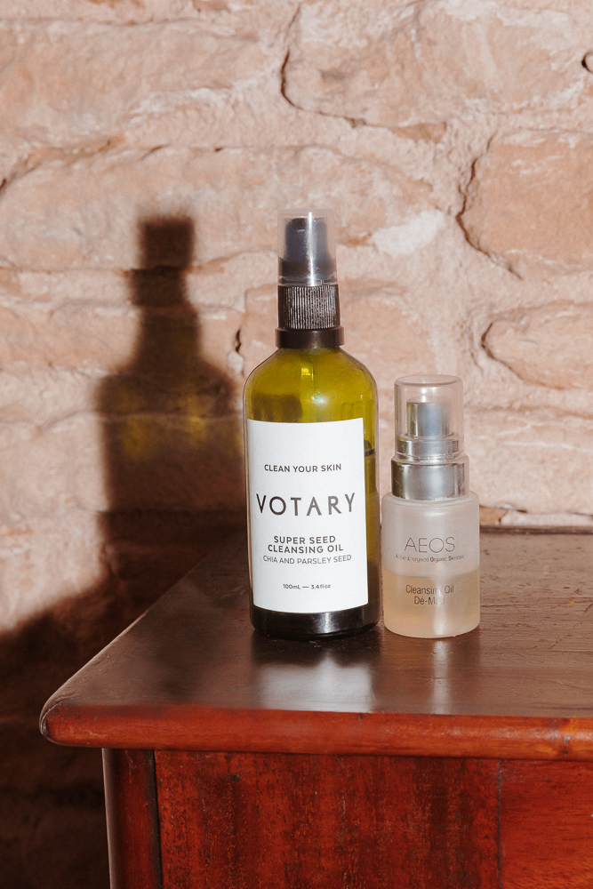 Then I cleanse with Votary Super Seed Cleansing Oil, which stays on your skin a bit. After that, I’ll make a cocktail of serums, usually including a hyaluronic acid. I use Skinceutical's CE Ferulic every day. And I love Crème de La Mer—it’s old school. It’s like filler—you put it on, and it just feels really thick and nice. It’s usually my finishing day cream. I always use sun cream, always, every day—La Roche-Posay Anthelios 50 SPF is my favorite.