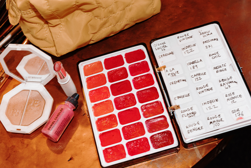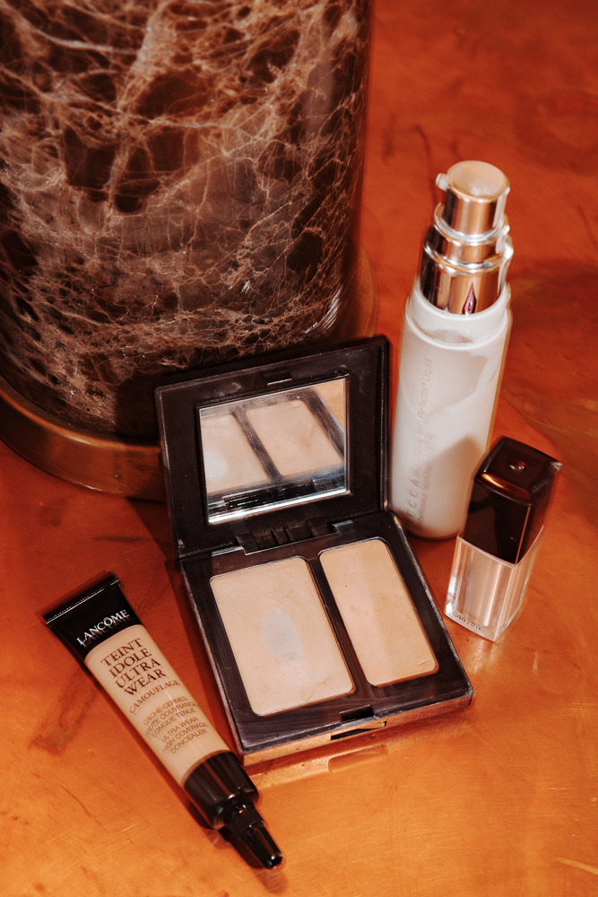 If you have a breakout, you need really good concealer. The worst for me is if I go to pop it and it isn’t ready, and it doesn’t come out. I’m like, ‘Oh no, I should’ve left it!’ It’s so swollen. I think I’m getting better at judging if it’s gonna come or not. Then, I would put on some some translucent powder over the spot, and then foundation on top of that. Then it’s locked in. When you put the concealer on, it’s got something to diffuse into. Usually when you put concealer on it has that definite edge, whereas when there’s something under it, it has something to blend into. After that I’ll use a really heavy coverage concealer, like Tarte Shape Tape, or Laura Mercier, or Lancôme—all of those are full-coverage. For powder, I just use Chanel loose powder. It works really well over the Lancôme, because when you put that on it’s quite elastic, but it still has a skin-like finish. Some of them can dry really matte, but that one dries like skin. If you put a powder over that, it kind of moves with the spot. That sounds disgusting. [Laughs] It’s kind of like a flexible mask that moves around with it. I’m trying new foundations all the time, looking for best in class or something really unique. It has to tick all the boxes for me, which are good coverage, good colors, realistic-looking, buildable... so that if you want to wear it super thin, you can, or build it up to medium, you can—it lasts, it looks like skin, it’s not too matte, it’s not too shiny. I’m so fussy about foundation and skin products, in general. I’m so hard to please. A foundation I wear to an event can't have SPF in it. If there’s a lot of titanium dioxide or zinc, they’re the worst offenders in terms of flash back. When any of the minerals are high up the list, I’m scared for myself or any of my clients because it ends up looking so chalky and horrible. I tend to use Make Up Forever HD because it’s SPF-free. The Lancôme Cushion, which is really nice for a dewy red carpet look. I like a cream blush—I like Cloud Paint, I like Daniel Sandler Liquid Blush. I always wear blush. If it’s really warm weather I’ll wear powder, but I just prefer cream blush. I think it looks fresher on the skin. You can mix it with liquid highlighter as well. I like the RMS one, the Tata Harper is nice. Lots of little pots—it just looks better, I think. I don’t put powder on my cheeks because I get so oily on my t-zone that I like to leave that part a little glowy. That’s how you can get away with having more full-coverage in the center and mattifying in the middle. You can kind of trick the eye into thinking you’re not wearing a lot of makeup if it’s fresh around the edges.