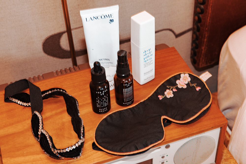 At the end of my night, I’ll do a treatment before bed. I have all manner of body and hand care products by my bed, and I’ll oil myself up. My husband always says, ‘You look like you’re about to go swim in the Channel!’ I always sleep with a dark mask because I literally can’t sleep without it. I like this one from Holistic Silk. If I don't have a mask on, I don’t sleep. It’s like my crutch."