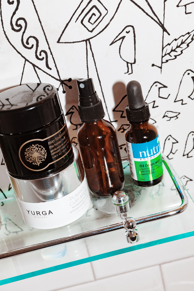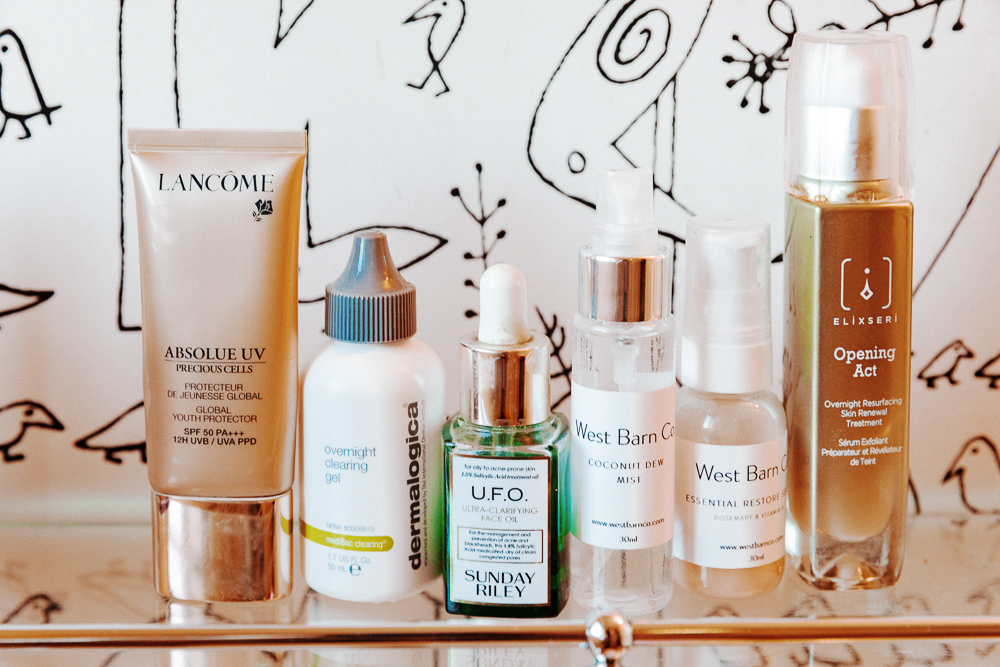 To prep my skin, I've been using an Aloe Vera gel from Whole Foods, and then serums under it, as long as they’re not watery. And I’m always doing masks—I don’t believe you can do too many, but maybe my skin is just very receptive to masks. I’ll probably put a mask on when I’m brushing my teeth, sorting out my clothes at night. First I’ll probably do something enzyme-y, like Yurga’s Pumpkin Clay Mask. Then something plumping after that. I love May Lindstrom’s masks, and Susanne Kaufmann. I keep all my cold masks in the fridge. I love the Sarah Chapman 3D Moisture Infusion Masks, which are bio cellulose sheet masks you can keep in the fridge. That will just snatch the skin, which is what you want for the red carpet. If you don’t have a mask, you’re best off using just ice cubes on your face. Anything cold is a dream. The result is that you just need less makeup, I think. If your skin is really glowy already, I definitely wouldn’t need as much foundation as I would if I felt my skin didn’t look its best. Then I give a little spray—I’ve got a rosewater mist from Yurga, and another one that’s just from this farm in England. I think it’s called The West Barn Company. It’s a Coconut Dew Mist that I’m loving. I’ve been using their serum as well, which is just a silicone-free serum of rosemary and vitamin B. That one is so good under makeup. I would pat the spray in, or if I’m in a rush just tissue it. I don’t use a lot of cream under makeup because I’m too oily, so I’m better off with a light serum. During the day I use one with SPF. UFO is a good one for me if I feel like my skin’s going to break out. I quite like that if I’ve got something problematic brewing. For me, if I sleep in that, I look really good the next day. It just zaps everything, and all the lumps and bumps are gone. If any lumps and bumps are coming up, I just put this on, which I’ve literally used for 15 years. It’s from Dermalogica, and it’s zinc and salicylic acid. It’s the only one you can layer on—I put two layers on, and put it all across my chin and jawline if I’ve got something big the next day. Then Opening Act from Elixseri is new, it's an overnight type of peel. I can’t use scrubs, so I’m better off with something chemical to exfoliate my skin.