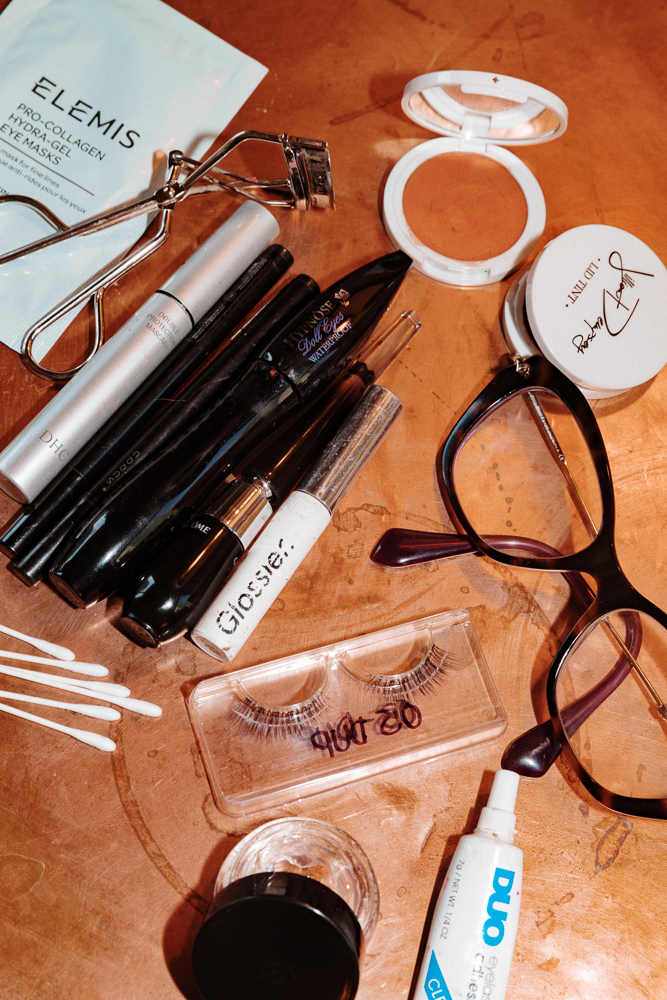 I love fake lashes from Japan, because they do loads of half sets, quarter sets, inserts... I’ll always take an empty suitcase when I travel there and fill it up with lashes. I either put a half set on the outer edge, or I do individuals. I put my mascara on, which is Doll Lashes, and let it dry. I don’t personally like, on myself, really gunky lashes. I like Doll Lashes because it separates them and makes them feathery. I just think it suits my eye shape better. I never put lashes on the bottom, just a bit of mascara. Then I always do a bit of shading with eyeshadow. I try out different eyeliners, but the colors that I like tend to be grayish dusty violets that look black almost. I think they work quite well on my eyes, which are a hazy brown. Sometimes I use cream—I like cream shadows as well, and I like the Lid Tints by Jillian Dempsey. The colors are so nice. I recently started on this RapidBrow serum, and my brows are like they were when I was a teenager. I used it for eight weeks and didn’t see any results, and I was like, ‘OK, maybe it just doesn’t work.’ And then suddenly, at nine weeks, I had all this new growth! I like things like that that really work, even though it’s a time commitment. I have to keep it next to my bed, otherwise I’ll forget to use it.