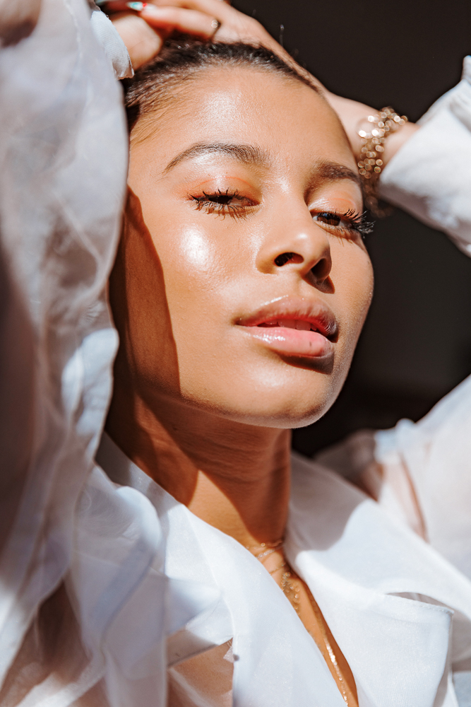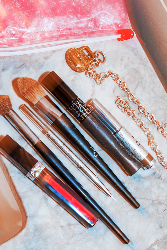 On my brows, I just started using this Dior Brow Ink, and I’m absolutely obsessed with it. I actually haven’t done anything to my eyebrows in about three years. But I just started filling them in last week. I also have Boy Brow. I either wear no mascara, or I’m Twiggy. The Dior Pump'n'Volume Mascara is my favorite. It lengthens and volumizes, which is what I need, and I do top and bottom. I also love Cloud Paint in Beam. I put blush on the apples of my cheeks. I just started wearing it, and I like it—it’s a pretty look. For my eyes, I have this Dior Palette that looks coral but is kind of bronze-y on. It’s funny, because when you have brown skin everything looks totally different than it does in the palette. It’s Dior Cool Wave in Heat Up. If I do wear mascara, I really only wear shades of red and bronze, like burnt shades, on the rest of my face.
