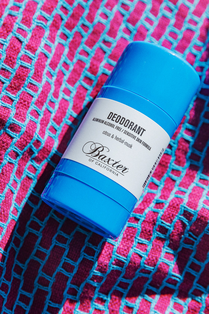 Once you've washed away all that sweat, why don’t you...get a deodorant instead of an antiperspirant? Just lean into it, you know? If you can’t fight it, simply mask it with Baxter’s very soapy, very classic deodorant scent. They call it citrus + herbal musk, we call it "Drugstore but make it fashion."
