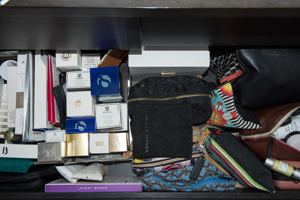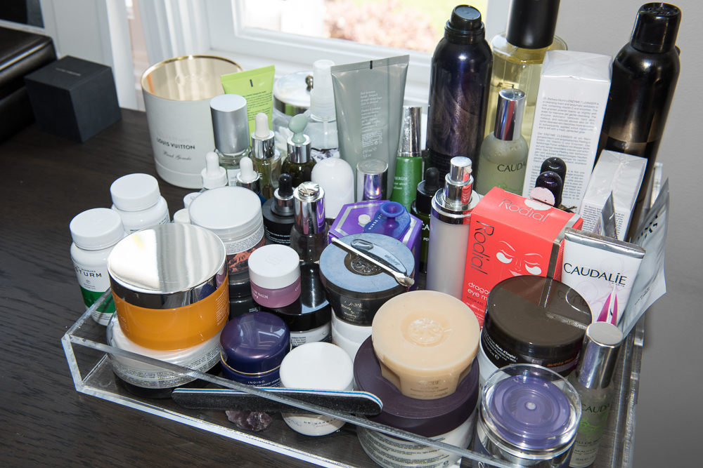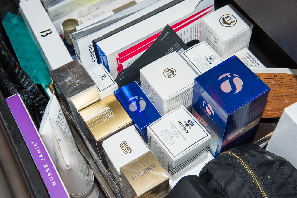I rotate my serums, but I’m really into the Capture Youth Serum from Dior right now. I like the EGF Stem Cell Moisturizer from Nurse Jamie, and I’m also into iS Clinical as well. I have their Moisture Emulsion, but I like to use that at night because it’s really, really hydrating. I also love Dr. Barbara Sturm—I use a lot of her stuff. I use her Hyaluronic Serum, I’ll sometimes put on her Glow Drops depending on what my day is and if I’m seeing anyone, and I like her Sun Drops as well. I’m out of her Blood Cream right now, but I’ll use that during the day. This is going to sound so weird, but she has a stash of my blood somewhere in Dusseldorf! I think she has one of the best new product lines where you actually see results. The Blood Cream is uber expensive but I actually see a massive change in my skin, and it was immediate once I started using it. I do this weird thing, and I do it with clothes too, where I try to parcel out my usage of things. I switch it out a lot. I become married to a program for a little bit, and then I move on to new stuff to sort of trick my skin a little bit. I love the Eden Lift Mask from Joanna Vargas. I love Rodial—Maria [the owner] is a good friend, and she has one of the best overnight masks—the Dragon Blood Hyaluronic Mask. I love it so much. I sometimes use the Rodial Dragon Blood Under Eye when I’m on an airplane. I have a volcanic ash mask that my friend gave me from Korea, and it literally feels like you’re having a face lift. You can feel your face tightening up—it’s unbelievable.