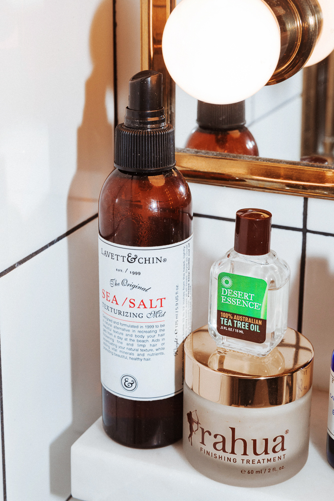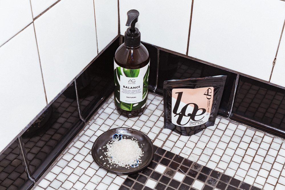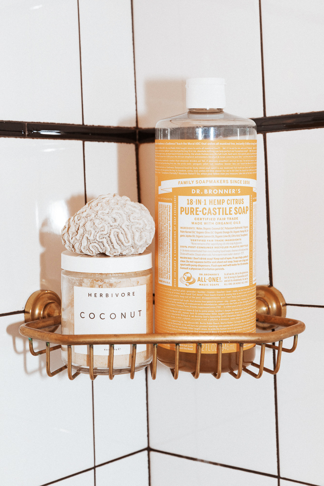 In the shower I use Dr. Bronner’s on my whole body—I feel like that’s a cure-all for everything. Then I have this Herbivore Coconut Milk Bath Soap and it’s really moisturizing. I try to travel with it, and when I do I try to draw a really hot bath after being on the plane. I also love this product from Cap Beauty called The Love Bath, which smells great.