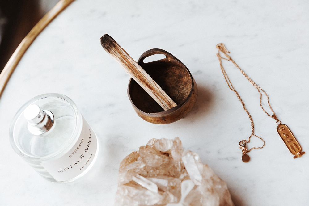I love fragrance—I love playing around with oils, and all of that. I’ve been so busy, though, and haven’t had time to put together custom oil blends to make a signature fragrance. So... I’ve just been using Byredo’s Mojave Ghost. It reminds me of California."