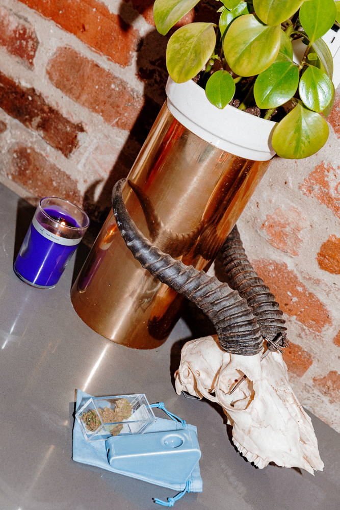 I don’t do anything to my hair. I just let it air dry and put that cedar essential oil in. I started out using it at the base of my roots for strengthening, cause I used to dye my hair black and had shorter hair and it needed it. But now I just wear it as a fragrance. Plus I dance a lot, I ride my bike everywhere, and when I go to yoga and I sweat, it releases right there on the nape of the neck and now it’s the scent that all of my friends identify with me. I like that, because I don’t like when people are like, ‘Oh, is that Le Labo?’ I think scent should be very personal. In terms of getting ready that’s it. Then I get stoned—that’s huge… I get stoned, dance around. That is the key to my daily routine. My business partner will always joke, because I’m very punctual, but if I’m a few minutes late she’s like, ‘OK, stop dancing in the apartment, don’t get more stoned, just come and meet me!’