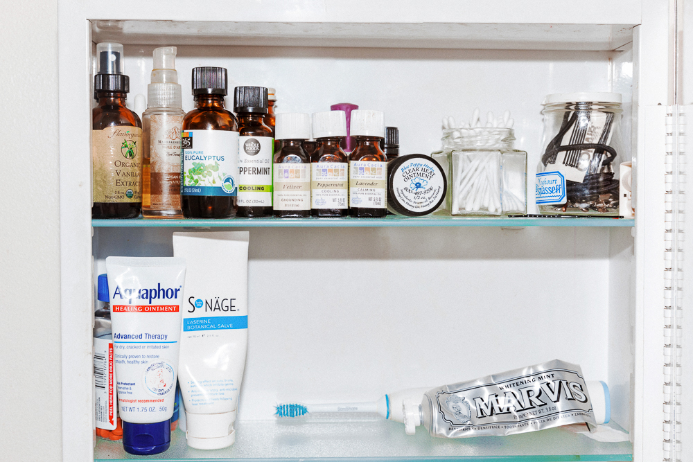 I’m incredibly, incredibly ritualistic with everything in my life. I love a cold shower in the summer—a really cold shower. I use Neutrogena Rainbath as my body soap, because I love the smell. When I get out, I use Neutrogena Sesame Oil as my body oil. I get this really great lotion from the farmer’s market, which is not really a lotion, it’s more like a salve. But it has honey and all these essential oils, and I started using that because I used to have really dry-but-oily skin, and this just evened everything out. And I use geranium essential oil on my face. And then, the thing that gets the most attention out of my entire regimen, is I wear Texas cedarwood essential oil in my hair. I put it in my hair and at the nape of my neck. One of my closest friends one day was like, ‘You know, I think it’s like the smell of like a hamster cage, but in the best way.’ [Laughs] It’s cedar, so it’s the wood chips. For women, there’s got to be something with pheromones, because I will hug someone and they’ll be like, ‘What are you wearing, what is that smell?!’ It’s been crazy! I’m not going to say where I get it. I’m just kidding, it’s from fucking Whole Foods. I use the vetiver as deodorant, I use the peppermint oil if I have cramps, I use the lavender and the eucalyptus in the shower... The Texas cedarwood is just like, it’s money. I love essential oils.