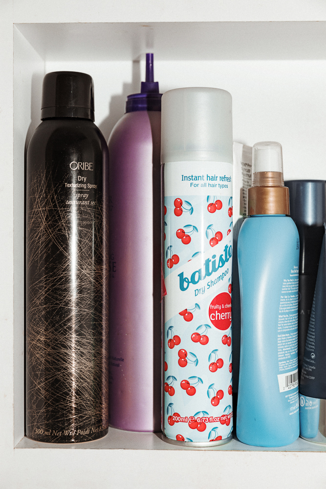 My hair is naturally curly—I’ve spent my whole life straightening it to look more “Asian” for shoots. You could also say my hair doesn’t make sense—the under bit is fro-like, the top bit is almost straight, and the middle bit is curly. I’ve only just started to wear my hair in its natural state. There’s this new brand called Monat that I just tried and it’s amazing. The shampoo makes you feel so clean. The conditioner is great, too, and a dime-size goes a long way. They’ve also got a split end recovery serum. I use the Oribe Texturizing Spray in the black bottle—it smells unbelievable, and you just want to spray it in your hair every day.