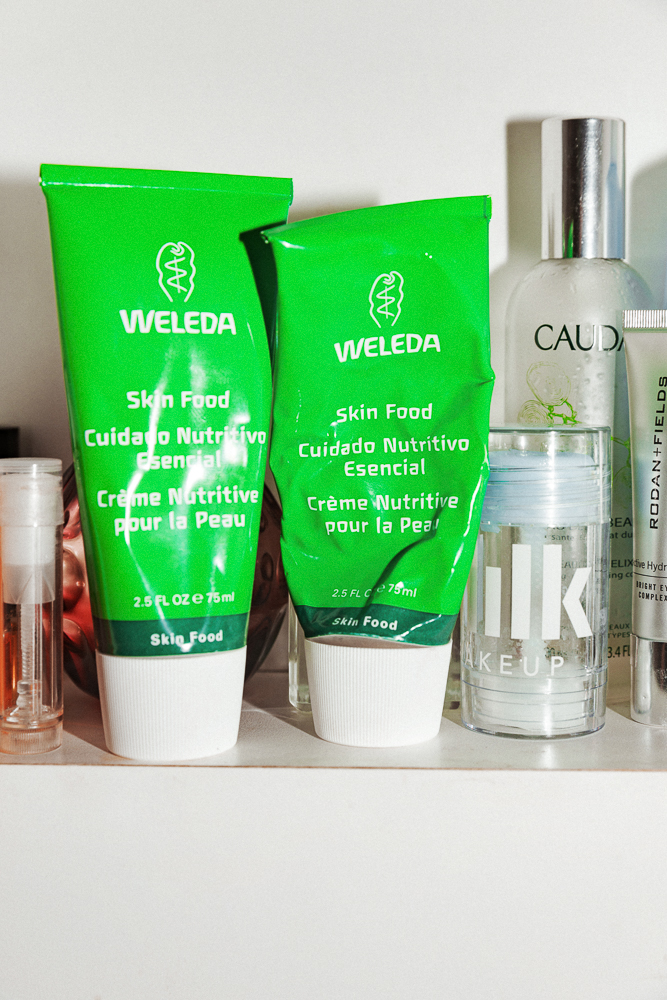 I’m obsessed with sheet masks—it’s probably the Korean inside of me. I do them at least once a day, and I’ll do them anywhere and everywhere. I love the Dr. Jart ones with the big pills on them, which makes it feel like they’re medical and doing good things for you. [Laughs] It’s science! The frothy ones kind of scare me, I’m not going to lie. There’s this cool company called FaceTory and you can try different ones. You don’t have to buy a pack—they just send you an assortment, and you see which ones you like. Outside of masks, I keep it very simple. I don’t wash my face—I don’t need it. I wipe with wipes that have oil in them—the blue Neutrogena ones are my go-to—and I’ll tone with an alcohol-free toner. Any one, I’m not really picky, a Neutrogena one does the trick. And then I moisturize, and that’s it. I am really obsessed with Weleda Skin Food. It’s cheap—you can use it for anything. One tube lasts an insane amount of time. Even under your makeup it gives you that glow. That is the only cream I use on my face. Before I discovered Skin Food, when I needed intense moisture I would throw on Vaseline or Aquaphor. I think it’s because I’m used to Asian humidity. People say New York’s humid, but for me this is dry. When you’re used to 98% humidity, there’s a constant dew on your face. Maybe that’s why I’m also obsessed with face mists—I mist all the time, whenever I can, on planes, everywhere, like 15 times a day. I try all different kinds. I love the Caudalie Beauty Elixir because it also has this minty thing so it kind of wakes you up. I just ordered a new one that I’m waiting to try from Herbivore—it's coconut water and rose. I’m really into coconut—it’s so good for everything! Swirl it around your mouth it and cleans your teeth, put it in your hair... it also works as an after-sun. It’s not for everyone—it depends on your skin type.