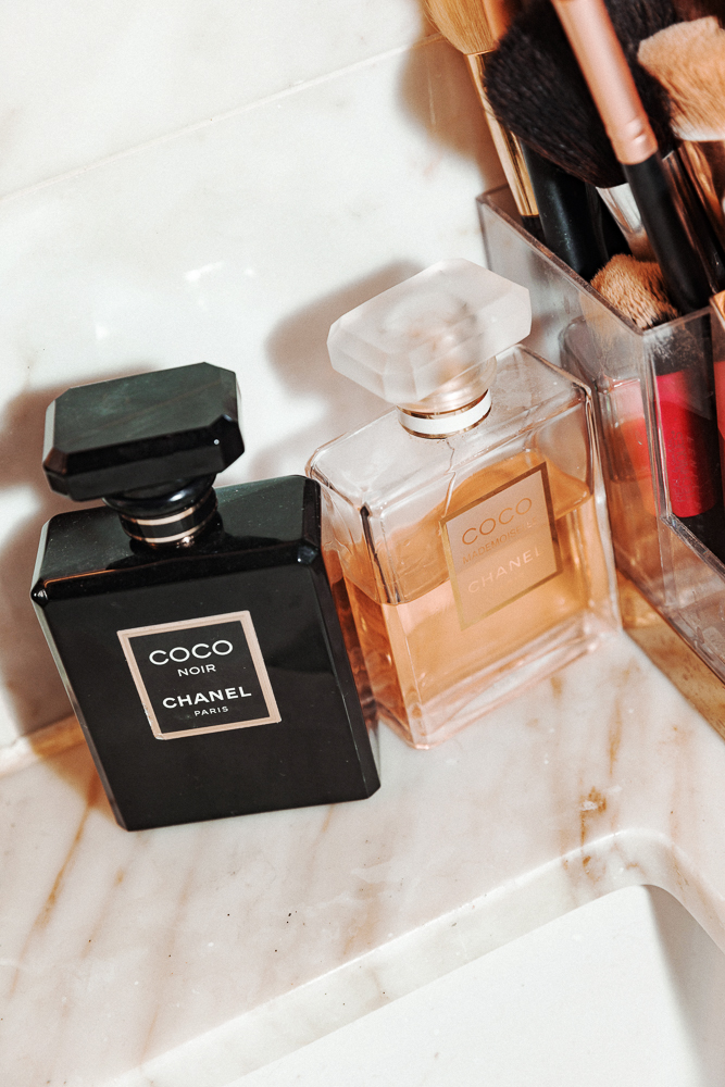 I don’t wear fragrance daily. When I’m seeing someone special, or if it’s a date night or something like that, I definitely will. There’s the Chanel in the black bottle, Noir, that I wear, and then Coco Mademoiselle in the daytime. I just smelled a Tom Ford men’s fragrance that was so sexy and unbelievable that I would wear that. It’s a black bottle, and it just smelled like sex.”