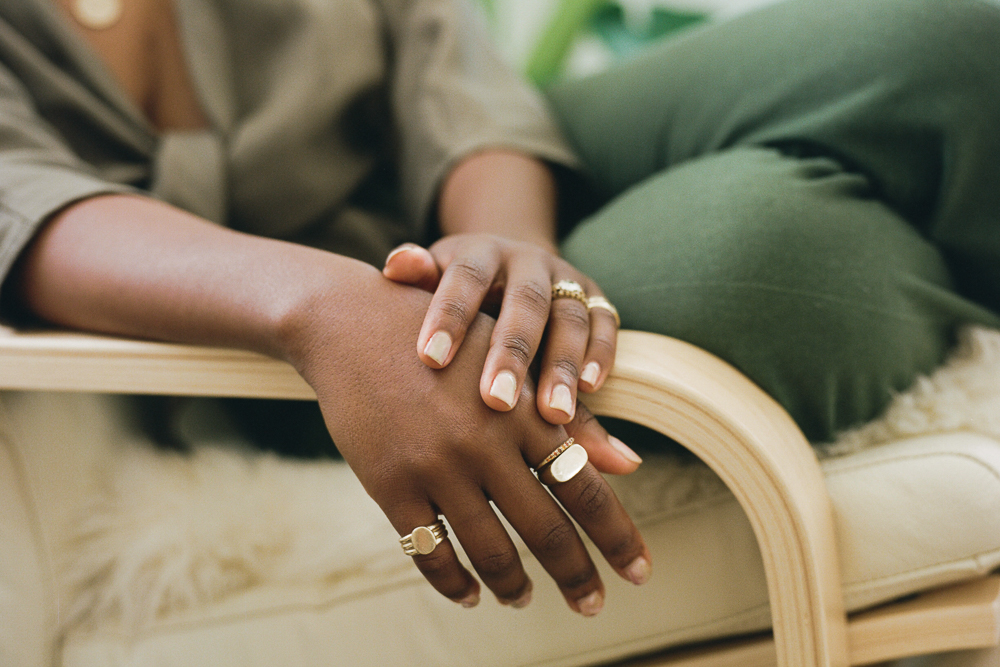 I tend to dial up my skincare around ovulation because that's when there is a huge flux in estrogen and progesterone. That swing can cause breakouts, so I make sure to double down on correction pads and vitamin A gel to keep my skin cells turning over. Otherwise, my morning and evening routines are kind of the same. The only thing that really switches out in the evening is that I have two masks that I like to use. I use the Masque Vivant from Biologique—I obviously have a thing with Biologique. That’s my 30% because I don’t really know what’s going on in these products, and I don’t care. They work. Then Biossance Peptide Gel is good under the eyes at night. For exfoliating, I really like Goldfaden Doctor’s Advanced Scrub. It’s very, very fine. I probably use that like twice a week. Or sometimes I switch it out for True Botanicals' Cellular Repair Serum. I will use oils around my eyes because that area always gets a little dried out. If I was not doing this routine, my skin would not look like this—I have acne, eczema, and hyperpigmentation in my family. I’ve always struggled, and this is the first time I haven’t needed medication for my skin to feel normal. I get peels once a month from the same aesthetician. She’s an acne specialist—she studied with this doctor in Chicago who also happened to be Nigerian, so she got really, really good at working with people with high melanin in their skin, which was a selling point for me. You just don’t know what’s going to happen when you go to see these people—you don’t know if they’re going to figure out what your skin really needs.
