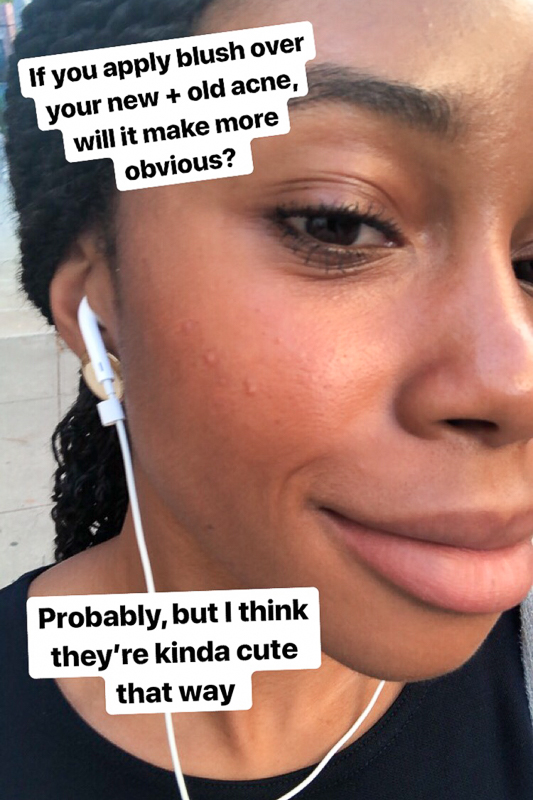 They're just a part of who I am! I always think they look worse than they really do, and sometimes they do become a glaring buoy on your face. But I love seeing them get better day over day. There was actually a point in time when my skin was really clear and I kind of missed checking on them every morning? I can live with them.