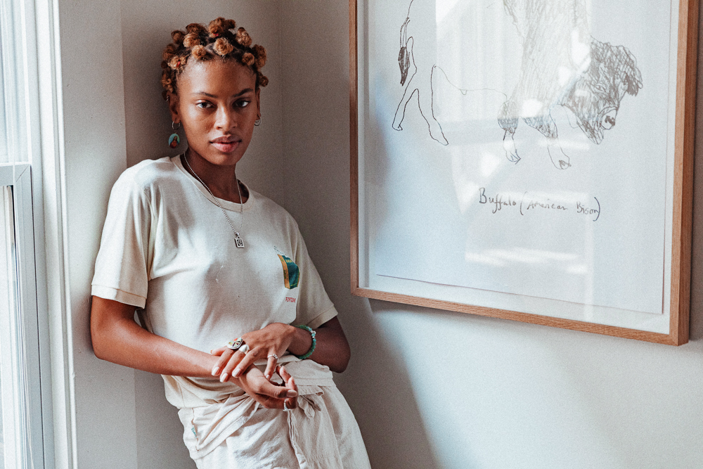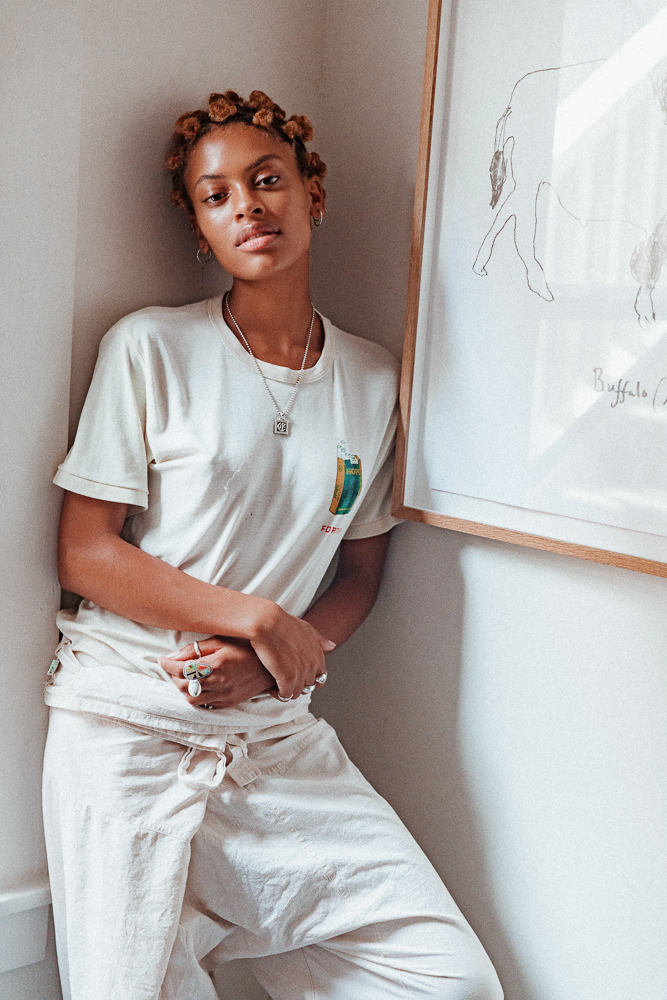 “I’m from LA—I think most people go there for the beach, not downtown, but I grew up in Koreatown. My dad is from Nigeria, and my mom is from Wisconsin, and both of my parents are in fashion. We were raised to understand dress, and also the body and how the body compliments dress—how fashion is what you wear, and how you wear it. In that way, they instilled a lot of self-confidence [in me]. I think that if I didn’t have the parents I do, I would be a lot more reserved. Because I grew up in predominantly white areas and I was the only black kid, I always struggled to see myself as beautiful or desirable. When none of the boys will look in your direction, and all of the girls are picking at your hair, or putting stuff in your hair, or making comments, you’re like, ‘Something’s wrong with me.’ But then I would go home, and it was very clear there was nothing wrong with me. My parents were all about natural beauty, and there was a pride element to it—like, ‘You are an Enuke, you are beautiful.’
