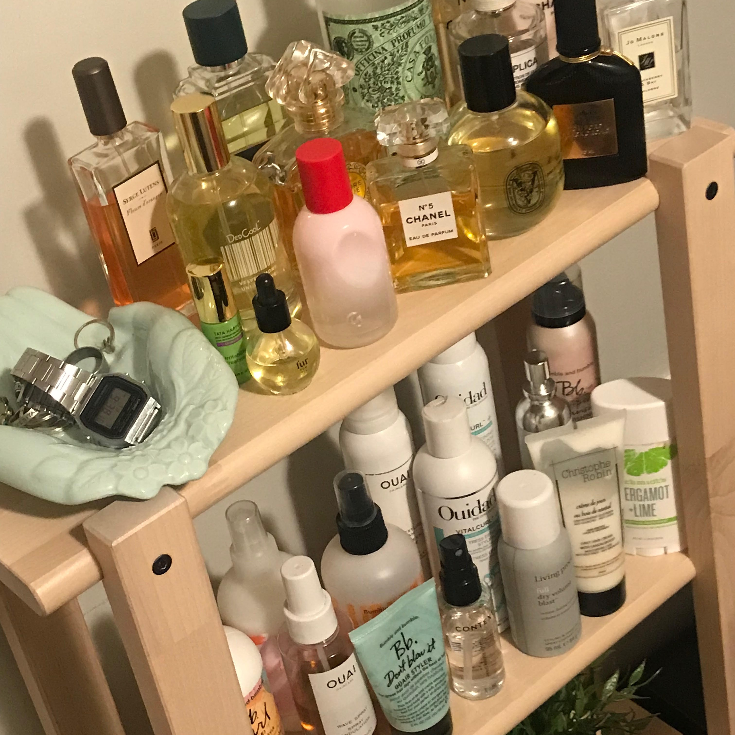 I feel naked if I leave the house without fragrance. My ‘core four’ are Serge Lutens Fleurs d’Oranger, Chanel No. 5 Eau de Parfum, Jo Malone Blackberry & Bay, and Tom Ford Black Orchid, but lately I can’t get enough of DedCool Velvet (Monroe) for its smoky creamy juniper-y goodness.