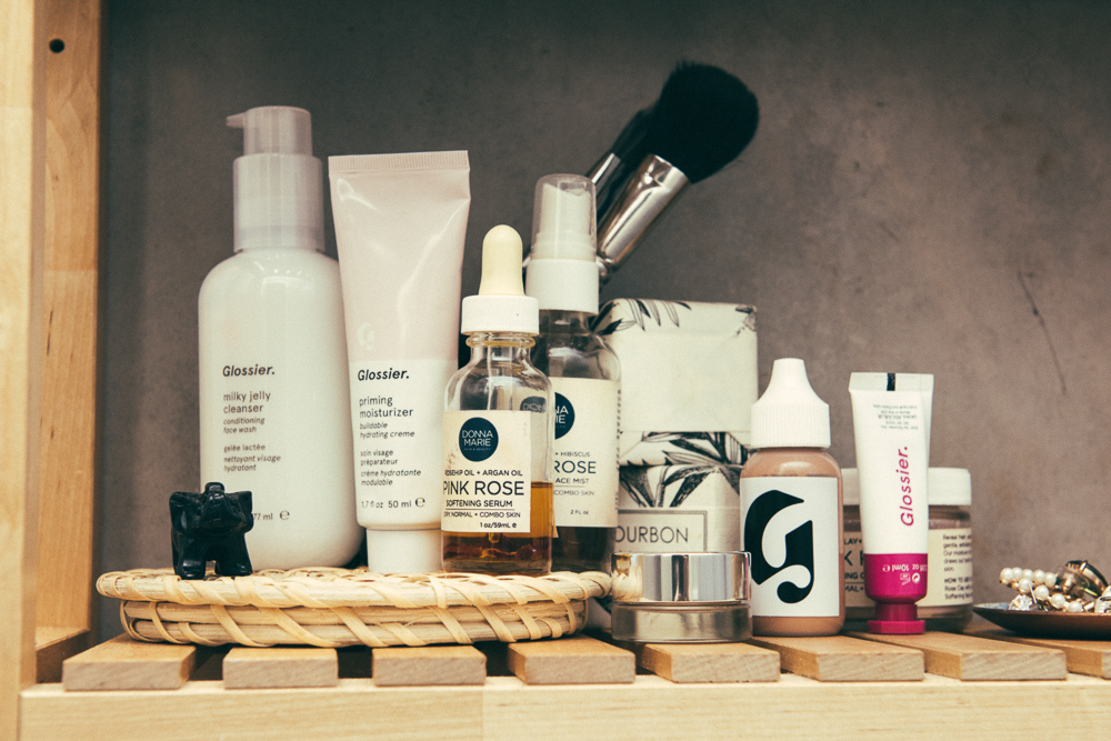 I use Glossier Skin Tint in Deep—since I work in the hospital a lot, I find full coverage is not realistic for the kind of work that I’m doing. There’s a Nars concealer stick that I use in Amande on my undereyes and a few areas that are darker on my skin. I use Glossier Boy Brow, and on my lashes I use this mascara from Benefit called They’re Real. I usually just wear a neutral lip color—I really like the Fenty Beauty Gloss Bomb. If I want more, I may do a cat-eye. L’Oréal has this little eyeliner with a spongy tip, and I can do a wing tip with that really easily. Then I put on blush—Glossier Cloud Paint. I use the more burgundy one, Storm. I’ve also been using Dawn, which is a more orange-y color. The other day I had it on and I walked outside and my husband was like, ‘Oh my god, you look like a little butterfly!’ It’s really bright, and I love that. Nars has a really deep red that I put on when I want something a little more.