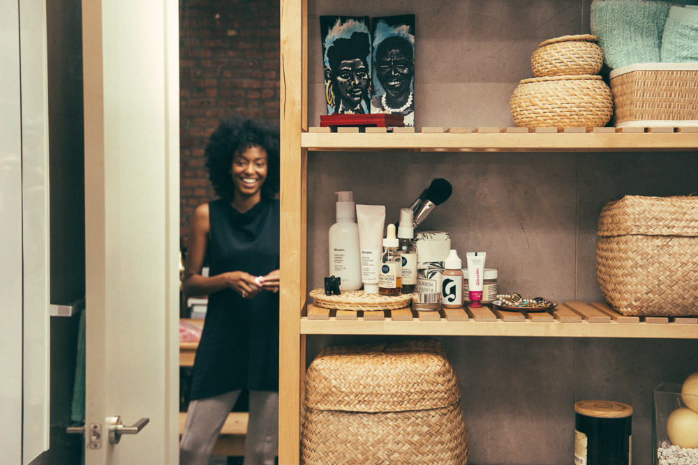 I have eczema, and I would try to use all of these different products to cleanse my skin. My skin reacted every time with a dry spot or rash—I thought it was helping. When I went to my dermatologist, he was like, ‘Just stop.’ It’s Dr. Carlos Charles here in New York. Now I use Cerave moisturizer and cleanser, and I really love witch hazel. Growing up, my mom would always have me do a once-over with the witch hazel. I still use that. The Cerave [cleanser] is water-based, but it doesn’t lather. You want that lather to feel like you’re cleaning well, so I’ll get this little tool called the Foreo when I find that I’ve been wearing makeup and need something to scrub a little deeper. I have a medication when [my eczema] gets really bad, but I don’t have a lot of flare-ups anymore. Honestly, it’s only when I’m stressed. So I keep it really simple and do the same thing morning and night. Because I wear product in my hair, if I’m not careful, I'll get breakouts on my forehead. Then I use a little Atralin that my dermatologist prescribed to prevent acne–that’s the brand name, but it is a prescription medication like Retin-A. It’s really good, you can only use a pea-sized amount once a day. I use it in the morning, but I really should use it at night. I put it on first, and then layer it with moisturizer and sunscreen. I use Neutrogena [sunscreen], just because I think they were the first to have the one for face. I think it’s like some ridiculous SPF, like 90, which I don’t think is even possible. [Laughs] Sometimes I’ll use a rosewater spray and then a face oil with rose. It’s from Donna Marie, and a friend recommended it to me for my wedding. It smells good, and I find that my face feels softer in the morning.