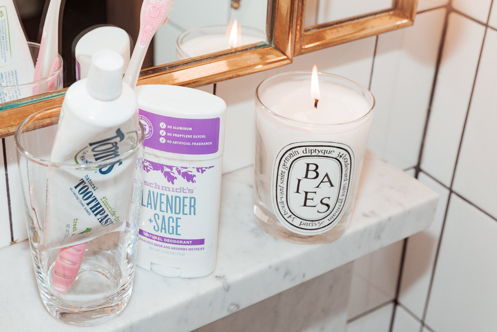 My other thing is that I always travel with a candle—a full-sized one. For me, it’s about feeling a sense of being at home. When you’re in hotels so often, you’re not in your own bed, you’re not in your own bathroom. Scents, I think, trigger good, happy memories. Diptyque Baies is one of my favorite ones, and Le Labo Santal 26 is my other one. I go back and forth between the two.
