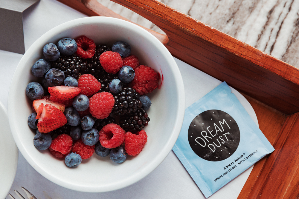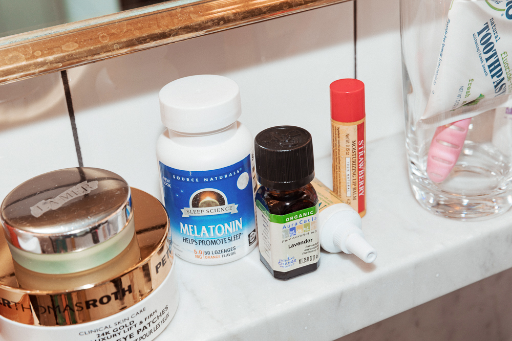 These days, I’m on a plane anywhere from three to five times a week. I’m lucky if I’m in one place for a full week. It can be hard to eat healthy on the road, but I have all these things you can put in your coffee—they’re all mushrooms. Four Sigmatic Chaga Mushroom and Reishi Mushroom... Four Sigmatic actually has an amazing matcha, too. Some wake you up, some help you sleep—it’s all good for getting over jet lag. When I fly, I actually try not to eat anything. Obviously eat if you’re hungry, but if you can manage it, it really helps get on the right time zone the moment you land.