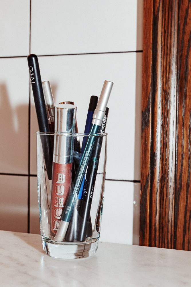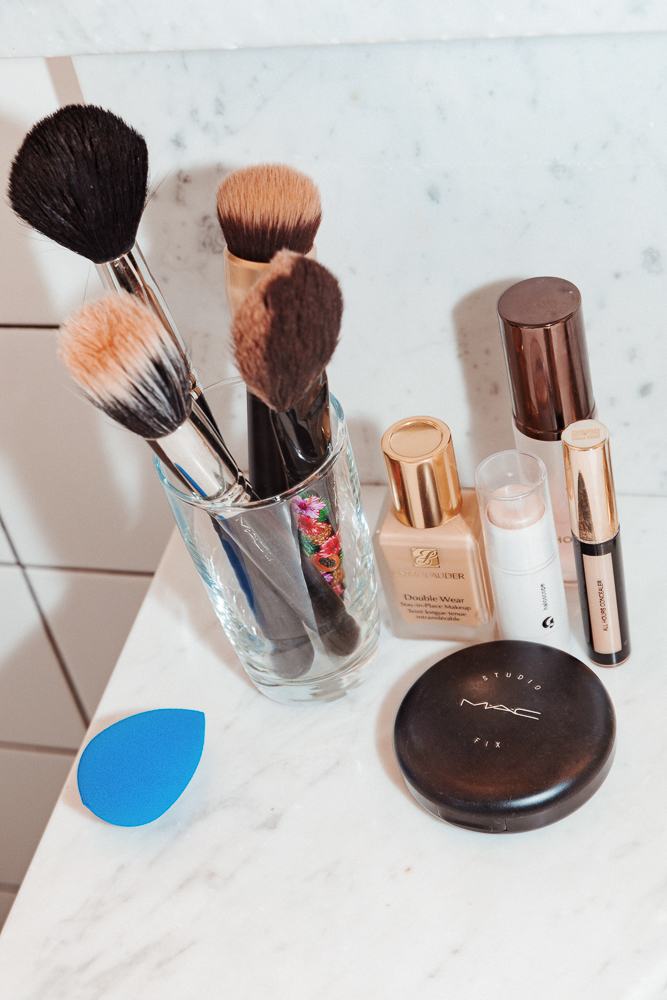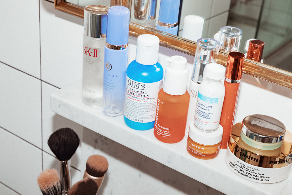 My mornings start when I wash off all the product I put on the night before. If I work out in the morning, I do a full cleanse in the shower. Right now I’m using the Sunday Riley CEO Cleansing Oil. Then I use the Kiehl’s lotion again, and this Ole Henriksen Truth Serum. The Algenist Genius Liquid Collagen is a new one I just got. I go to Sephora like two times a week—it’s so bad, but yes, I do. And also, you can’t walk in and walk out without anything! Got to buy something. I don’t know what all my serums claim to do, but sometimes I’ll add collagen to a smoothie or bulletproof coffee, so why not add it to skincare. The other thing that I use pretty consistently is the SK-II Facial Treatment Essence, which is really interesting. I had tried it and liked it, and then I actually did a partnership with them so I started using it regularly for a few months. Even after the partnership, I use it religiously—my skin really did fall in love it with. It’s helped with resilience and pore size. Even my facialist was like, ‘Wait, what have you been using?’
