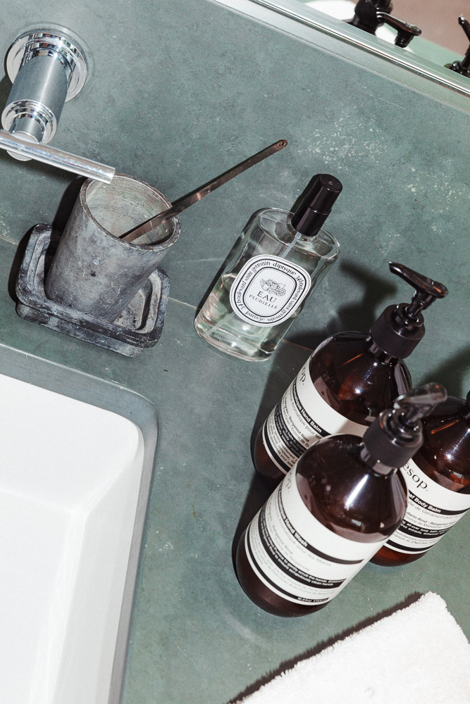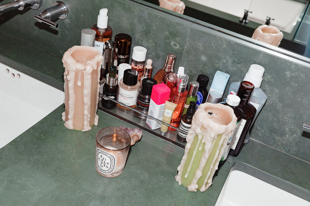 In terms of scents—Bum Bum cream, oh my God. It smells so amazing. For perfume I do L’eau D’hiver from Frédéric Malle. I’ll mix it with Carnal Flower and use that in my hair as a mist. They smell really cool together. If I feel like having a night where I do all the things, I’ll do the La Mer lotion, but she’s an expensive girl so we use her sparingly. It’s so exhausting to do 15 minutes of beauty every night. If I’m really going for it I’ll do that, and I love Bio Oil. I’ll do this and wear long pajamas.”