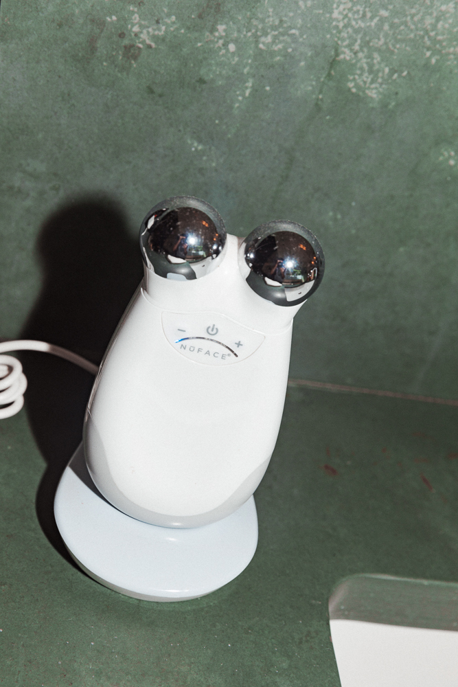 Another thing I do is use the NuFace once a week, but [if I have a big event] I go to Dr. Diamond. He’ll do a PRP. Right before I went to the Vanity Fair party I did the PRP and the Forma with him. The Forma is like a workout for your face, and it just tightens. PRP is the thing where they draw and separate your blood, so they get just the plasma. I’ve done it like three or four times and I feel like it really works. You can also inject it. So like right here under my eyes, it’s a little tired and sunken in, and I don’t want to do filler there. Putting a little PRP in there stimulates your own collagen growth, so you actually see it plumping without having to use fillers. It’s just your own body going back into your own body.