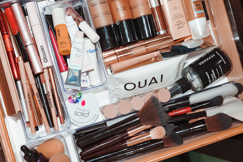 I do my own makeup for events—it’s expensive! I can do it in ten minutes. I don’t do all of the baking and whatever. Today I did the Charlotte Tilbury liquid concealer, her new one, Magic Away. Really impressive. It has the little sponge, and I just do a little bit right here under my eyes because I have rosacea there. So a little there, a little to brighten the middle of my forehead, and on the sides of my chin because I have scars from when I used to break out. If I’m going to wear more makeup, I’ll do the Luminous Silk Foundation by Armani. And then I’ll do the Fluid Sheer, which is just a glow, and I’ll mix them together. Then I use a little touch of the Tom Ford Shade and Illuminate—I swear by this. I have Intensity 1, and I use some of the brown contour with an angled Laura Mercier brush. I just kind of buff it up at my cheeks a little bit. Maybe a little on my forehead, and on the jaw. I don’t like to make it too harsh. And then I’ll do a light dust of the Magic Powder, or Laura Mercier powder, or Koh Gen Do. I’m not really particular about it, and I just do it on my cheeks because I like the rest of my face to be glowy. Then I’ll do the Benefit Hoola, which is the best—no shimmer, just so good. I’ll do that a little on my cheeks, along my jawline, and I’ll put some on my eyelids because I don’t wear eyeshadow. If I’m feeling really extra and I want some highlight, I’ll do this Becca one in Champagne Pop. Becca’s highlighters are so good, but I don’t always use them because they’re intense. Then I’ll do my brows with Anastasia Brow Wiz in Medium Brown. I do my brows myself, or Kelley Baker does them. This girl Audrey Glass microbladed my brows and it’s changed my life—she’s so good. My brows weren’t symmetrical before, one was really small and the arches were different, and this just fills it in so I don’t have to do my brows every day. And then I’ll use Too Faced Better Than Sex mascara. It’s more of a fluffy mascara, but I do like the Ardell Top and Bottom one, too. The bottom one has a really thin brush, and I like to use that for my top lashes when I’m going for a more subtle look.
