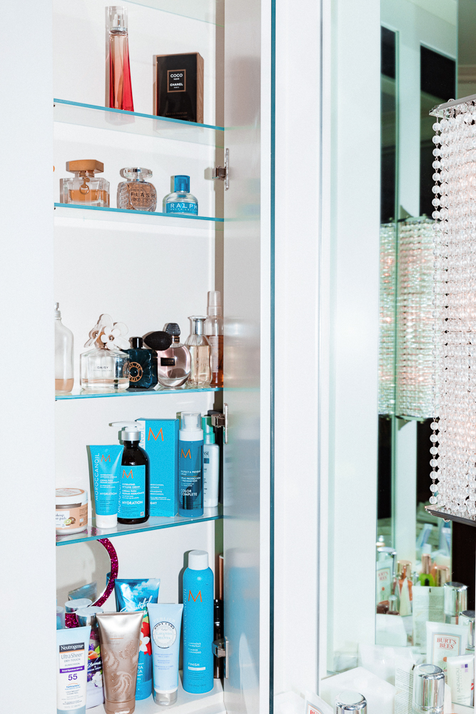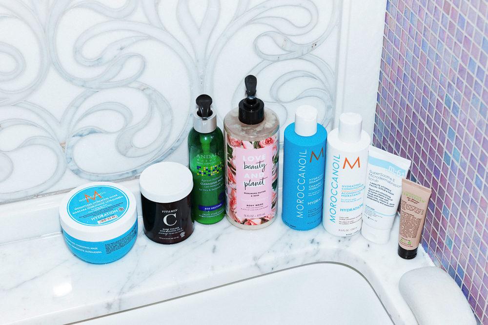 You know when you have bumps on your arms? It’s genetic—my mother gave it to me, I’ve given it to my son. I was actually so self-conscious that I wouldn’t wear tank tops or sleeveless dresses for years. After a while, my mother convinced me to start using Retin-A all over the top of my arms. I would use it every night, and it got a lot better, but I was sick of putting a chemical on my body every single day. I didn’t want to do that anymore. So I found this bar called Crystal Peel—it’s a microdermabrasion exfoliating soap, and it’s a grey bar, like a bar of soap. It’s really, really rough. I use that on the top of my arms every time I shower, and it works 100-percent in getting rid of the condition. I almost never get bumps on my arms now, and if I do it’s only if I haven’t used the bar in a few days. I just use it a little in the shower, and it works wonders. For me, it’s probably the greatest product I’ve ever bought, because it’s not a chemical, and it’s kind of changed my life. I’m not self-conscious like I used to be. I use Vitamin C Body Polish for the rest of my skin. In the shower I use this brand called Love Beauty and Planet, and it’s a normal CVS product, but I bought it because I like the packaging. [Laughs] I always struggle finding products that are animal-friendly, that are effective in what I need them to do, but also that look pretty. Sometimes I’ll find something that’s probably a really great product, but I just don’t like the packaging, or the way it looks, and I won’t buy it. I’m stupid in that way. Moroccanoil makes a really good body serum, which was my first time using a serum on my body instead of cream. It’s actually really cool. If I feel like my skin really needs the moisture, I have a dry body oil that I’ll use on top. You can just go to CVS and buy the cheapest one, and not feel guilty about [using a lot of it]. I really love Bath and Body Works, so occasionally I’ll buy some of those products. I just really love their packaging, and their scents—there’s something that just makes me so happy walking in there. For deodorant, I actually use Crystal Essence. My favorite fragrance is the Marc Jacobs Daisy. Daisy was actually my first pony’s name. I think with any fragrance, a lot of it is the mental thing. But I also love the way it smells—I think it’s really fresh and not overpowering.