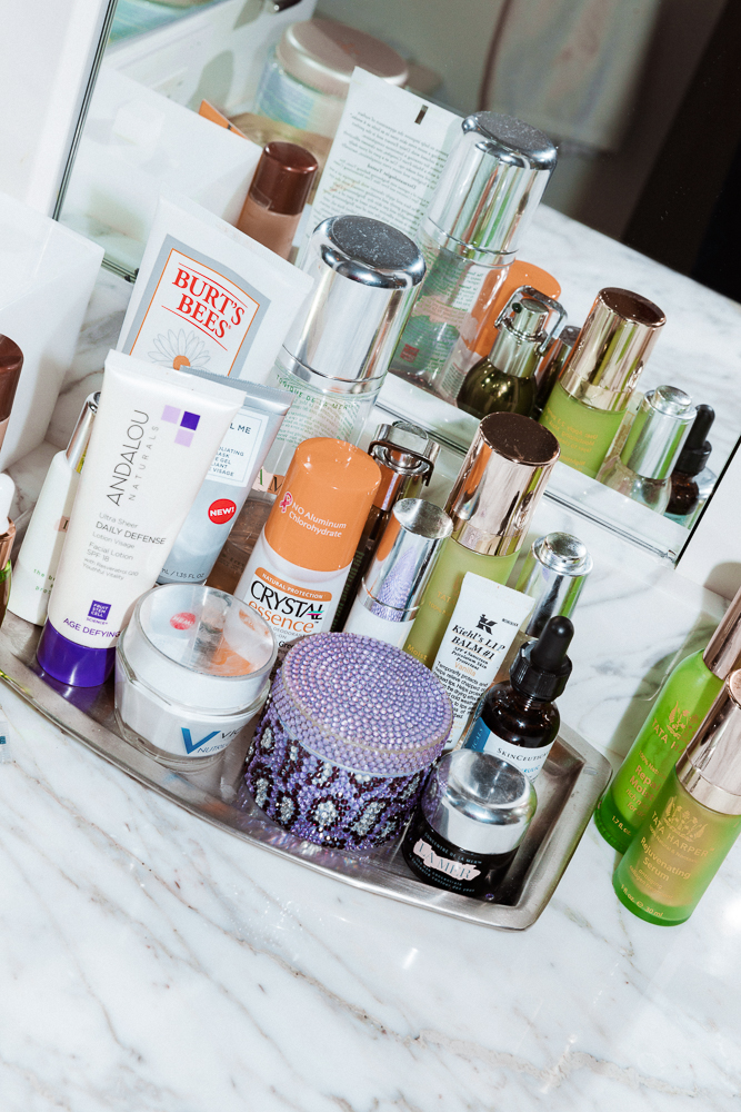 I’m pretty simple in the mornings. My skin is always dry, so I always moisturize. I try to use a serum before, and I’m very good about sunblock. Pretty much every day I’m outside in some way, so sunblock is very important to me. I use the Neutrogena Ultra Sheer—it’s the only one I ever found that, no matter how much I sweat, doesn’t go in my eyes. With riding, that’s really important, because I want something that absorbs into my skin, that doesn’t make me look white and pasty and that stays put. I have a La Mer toner that I use if I have makeup on and I need sort of an extra cleaning. I try to exfoliate once a week with a scrub from M-61. My mother gave me Skinceuticals CE Ferulic. Her dermatologist told her that if there’s one product she was going to use, that’s what it would be. I put it on and I was like, ‘I don’t even know what this is doing, I just know that my mother said it would be good for me.’ I’ve never had acne or anything like that, but I use a lot of oil and moisture products. I love a little face oil and a deep night cream. Whole Foods has a really good sheet mask—it’s the Andalou brand. I have their moisturizer as well. I love those, and then another good hydration mask you put on for like three or four minutes is No7’s Beautiful Skin Hydration Mask. That’s really good—it’s like a quick shot of moisture. I definitely do it more in the wintertime, but I feel like I still need moisture a lot in the summer. Tata Harper is a brand that I really like. I go to Heyday [for facials]. I love that they’re so easy to book, but also I don’t actually like getting facials—I don’t like sitting still. What’s great about Heyday is you just walk straight in, they don’t treat it as a big relaxation hour, they go in and get it done like, ‘we know you’re busy, let’s fix your skin and make you look good and be done.’