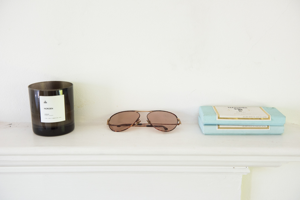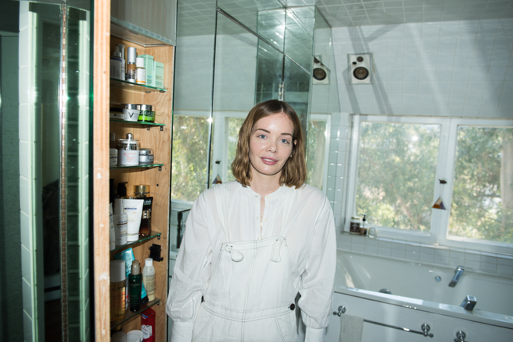 One of my girlfriends just launched this brand called Halcyon Hotel, and it’s all these really beautiful oils and candles. As a scent, that’s what I would wear. Beyond that, I usually do my brows and this Dr. Perricone lip color that’s like a natural lip color, and that’s the extent of what I do. I go to Striiike for my brows—Kristie is amazing. I always feel like I’m wearing too much when I use mascara, because I have long lashes. I have a bronzer, but it’s a body bronzer and it’s matte. Most bronzers end up looking really brown or too shimmery on me. The Chanel Tan de Soleil is really good. If I was going to do a look, it’s always a lip. Like, a red lip or a liquid liner cat eye, but with no mascara. The matte Nars lip pencils—I love those. Cruella is one, and the other one I like is kind of nude. Also, the Make Up For Ever lip pencil in C3–it’s always sold out because it’s really the best. It stays on, it’s the best for if you don’t want to wear anything on your lips, but it makes them more defined. As far as wearing makeup goes, it’s so fun to see people playing with it again. I feel like we went through a moment of being very minimal and natural, and I think everyone’s a bit bored of the world. How much more fun is it to have a reason to dress up? For so long, everyone—myself included—has just been wearing T-shirts and jeans. Let’s be a little glamorous again! [Laughs] Although…it is really nice to just wear T-shirts and overalls."