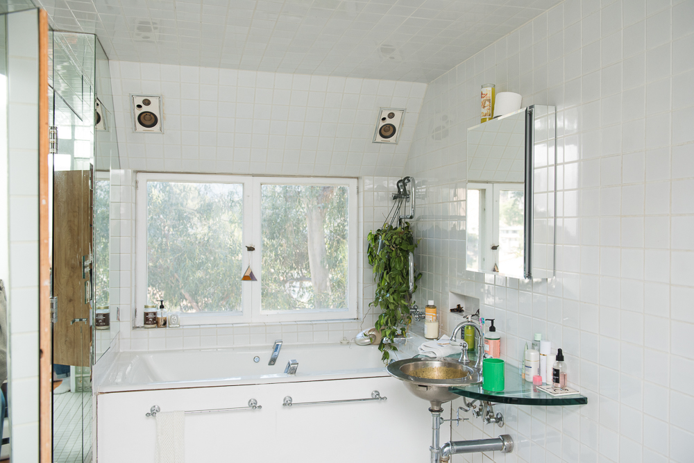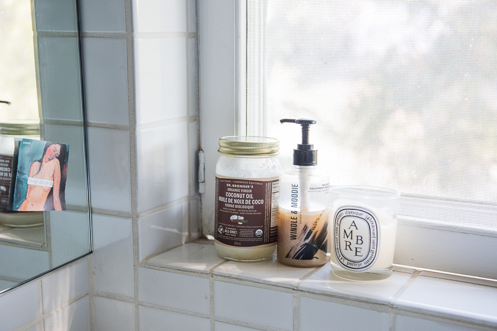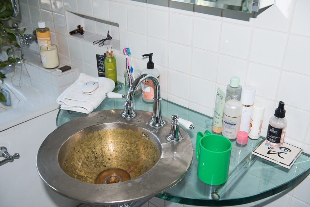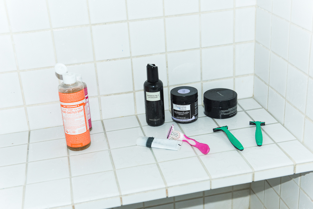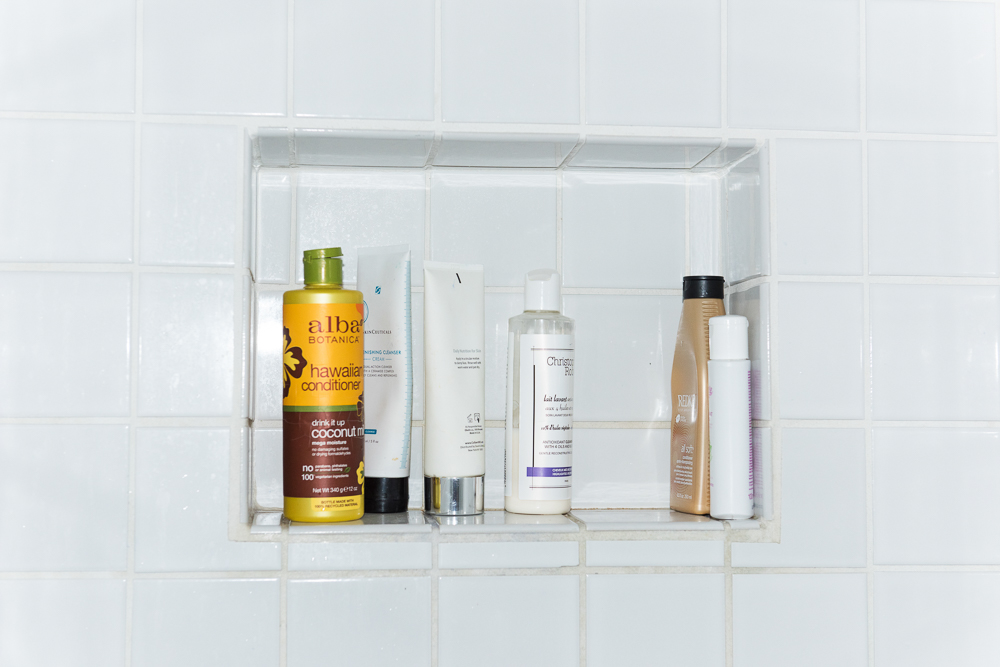 I was blonde for all of my 20s, and then I dyed my hair really dark. When I finally stopped dyeing it, all of the products I used had to be completely different. That’s only been in the last year or so, so I’m still trying to figure out what works and what doesn’t work. Christophe Robin is great, the Cleansing Milk. And then I use the violet conditioner. For the most part, I let it air dry. My hair is short, so when it gets fluffy it turns into a triangle. Every once in a while, I’ll go and get one of those de-frizzing treatments. It’s not a straightening treatment—it doesn’t change the texture of your hair. Elleri [Marossy] at Goodform cuts my hair when I’m here. In New York, Lena Ott used to do my color, and Blake Erik does my cuts. When I had bangs, I wouldn’t let anyone except Blake touch my hair, and now that it’s more of a bob, I kind of impulsively go. It doesn’t matter as much.