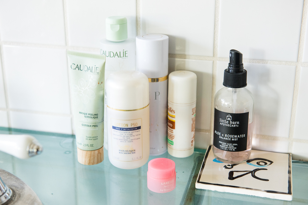 The first thing I do [in the morning] is drink a glass of water. And then I use Biologique Recherche P50. To be honest, I don’t really wash my face with anything. I just rinse it, then I do P50 morning and night. Biologique also makes these things that you put in the freezer that are like, lymphatic drainage wands. Ugh, they’re amazing. They’re these frozen wands, and they help get rid of undereye bags in the morning, and things like that. It’s probably the same way you use a jade eye roller, but these are very big, so you cover more ground in a shorter amount of time. I love the Laneige Lip Mask, the Caudalie Peeling Glycolic Mask is a winner. I do that, and then I have the reddest skin, so I use the Dr. Jart Cicapair Correcting Treatment. It acts as a primer, and for me, because I’m so red—I have so many broken capillaries and my skin is so fair—covering that is the one thing that I really need. On days when I’m really really red I’ll use the Tigergrass Drops as well because they’re heavier, and on days I feel better about myself I just use the Cicapair. It’s so neutralizing that I don't have to wear any foundation or concealer. Most of that stuff is either too pink or too yellow for me anyway.
