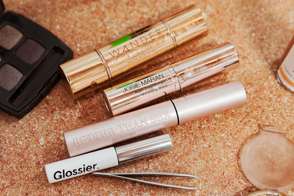 Josie Maran’s products are argan oil-based, and I like her highlighter stick. I’ll do that around my eyes and on my cheekbones, or I’ll use this Wander Beauty On The Glow stick. This is my favorite thing—it’s like a Moroccan color-changing something, and it kind of just makes the perfect shade of blush. I like blush high up, I don’t know why. A makeup artist once taught me a little trick—he said if you take the color from your cheek and put it on your eyelid, it brightens everything up. And Pat McGrath taught me that pinching the cheeks brings blood and color [to them]. For bronzer, the Dr. Hauschka Translucent Bronzing Tint is great in the summer, and I put it on with a little brush. And then it’s always great to have a red lip—I like my Chanel products. This is Rouge Coco in Arthur. If I’m going to do a little bit of a smoky eye or whatever, I like the Chanel quads. I can pull it off. I kind of go into the crease, and I’ll do more on the lid and blend it out with a brush. And I love Too Faced Better Than Sex Mascara. One last thing I have to tell you is that one time I was visiting New York, and I forgot all my makeup. I was going out, and I was like, ‘What can I do?’ I was at the Bowery Hotel, and I lit a match, and I got a little charcoal from the match and I did my eyeliner. And it worked! So, that was my solution.