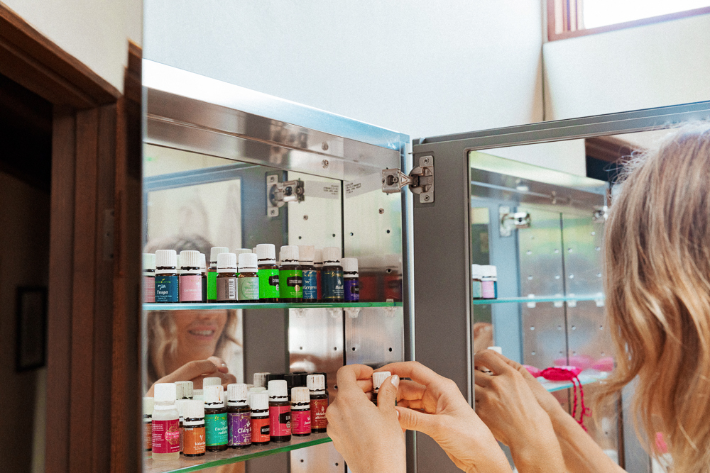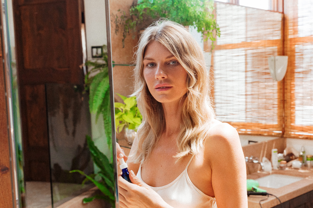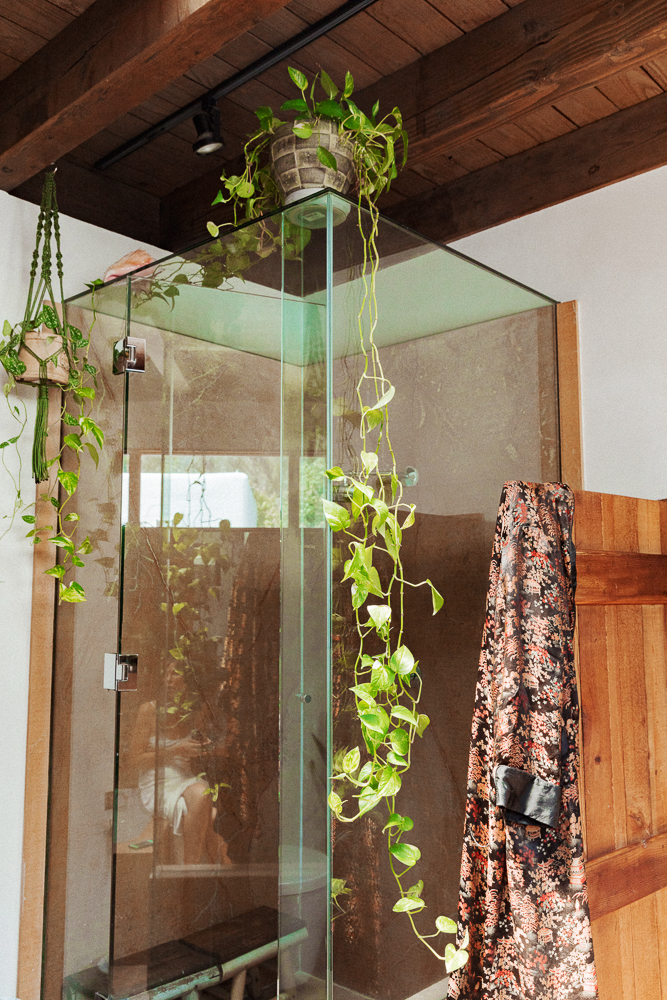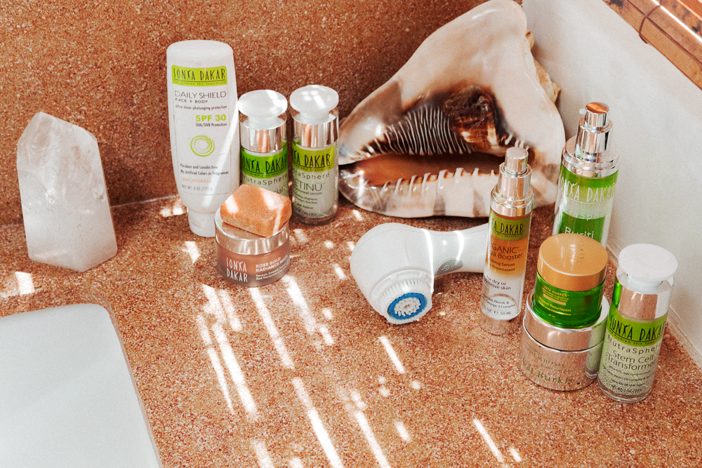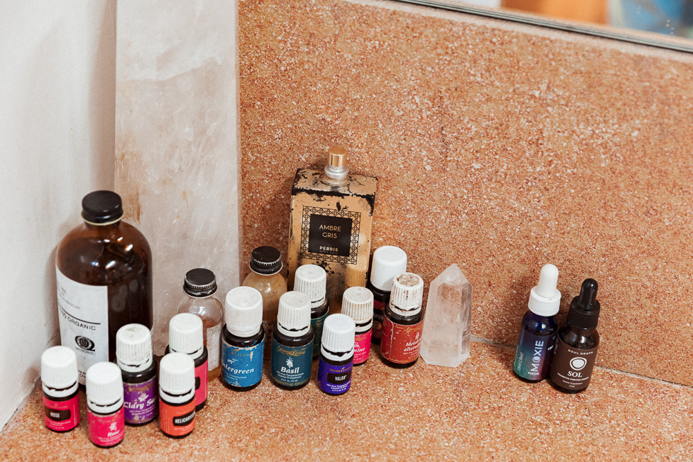 I’ve gone and gotten facial acupuncture, which is really cool. It opens up the meridians in your face. I get ozone therapy from Dr. Hirani—they take a vial of your blood out, mix the ozone in, and then they put it back into your body. And I’ll sometimes do IV drip therapy, where you can get all kinds of vitamins in an IV. Bulletproof has a place here down in Venice where you can do cryotherapy, all these different red light therapies, and infrared. But I do infrared [at home]. You can just order one online. For me it was an investment worth making because I’m using it two or three times a week. I’ll use that as a time to do my meditation practice. Or in the bath—I feel like baths are almost a secret ceremony for me, when I need to de-stress or be alone from all the boys in my life.