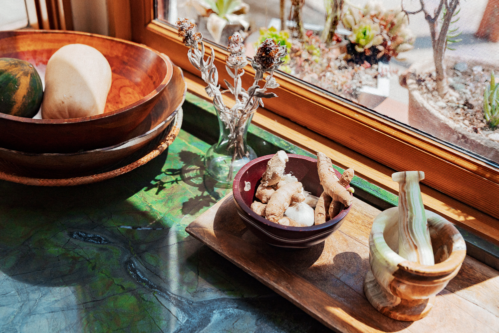 I really took the time to explore yogic studies, and got certified as a Kundalini yoga instructor through the Institute of Integrated Nutrition. I’m so lucky that my partner Brian enjoys practicing with me. We do different breathing techniques, meditations, or chants together in the morning. My ideal thing is to wake up at 5:30AM, but trust me, sometimes I hit the snooze button and do my practice after dropping my kids off at school. If I go in the sauna, I’ll then jump in the cold pool and I’m awake. I’ll shower, and then I’ll usually get my day started. I love black tea in the morning, and I’ll also do a little cup of apple cider vinegar in some water. My kids are 16 and 13, and I always make them a big breakfast. I know if I don’t they’ll just grab a bar, or eat nothing.