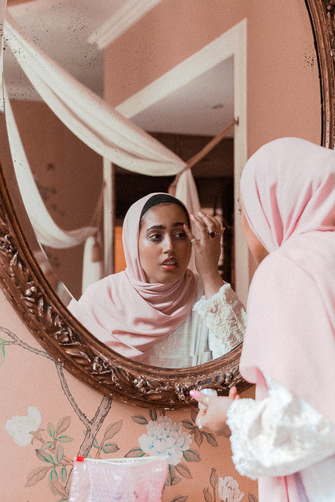 Salwa’s not a makeup artist, but a recent university graduate who just likes some good old fashioned makeup fun. Her tools? Watercolor paint brushes, like the kind you’d buy in an arts and crafts store (they draw more precisely, she says), and her go-to tip is that a liquid lipstick does the job of any eyeliner, and then some (just dip your paint brush in a tube to find out). But enough talking, now. Let Salwa take it away.