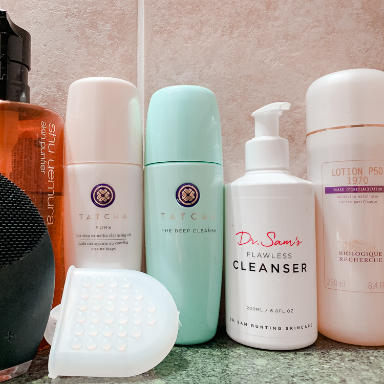 In the mornings, I cleanse with Tatcha's The Deep Cleanse, Dr. Sam's Flawless Cleanser, or IDS Delicate Cleanser, and then use Biologique Recherche P50 all over. I’m a big, big fan of P50 and am literally covered in it—scalp, face, and body. I use it everywhere, twice a day, and have grown to love the vinegary smell. I also use their Masque Vivant, VIP O2, Visolastine, and Biomagic. Biologique masks make you glow and they actually fix problems. I try to mask every other day, depending on how my skin feels. I recently also got the Cryo Sticks to give myself an at home cryo facial.