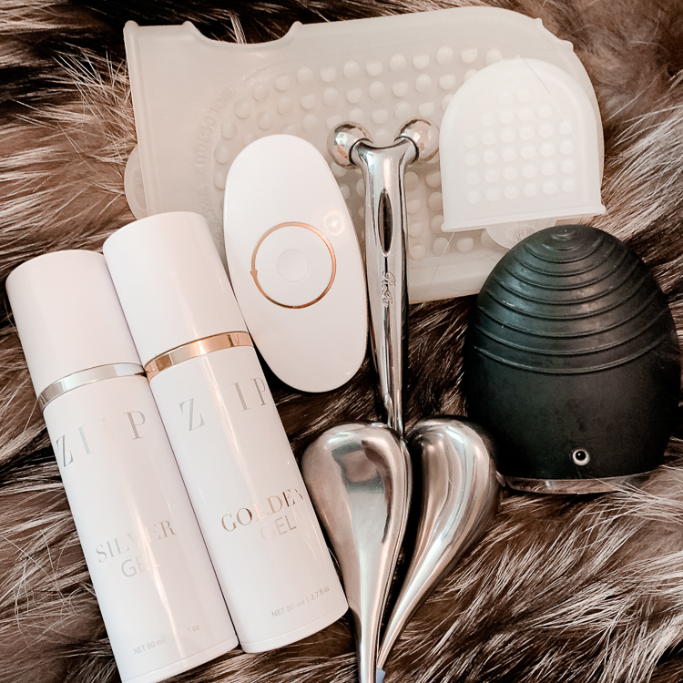 In the evening, I double cleanse with Shu Uemura Ultime8 Cleansing Oil, which I have used for the past decade. I also use Biologique's Mc110 once to twice a week and always see a difference in my complexion. I also believe in retinol—Neostrata's Skin Active Retinol or IDS A-plus are both really good. I love beauty gadgets but my star find is the ZIIP machine—I use this every other day with their silver gel. It tightens, lifts and fixes problems. I like that. The Foreo is also a nifty little device that's great to use a couple of times a week.
