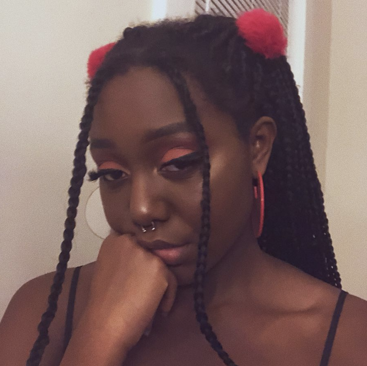 I love expressing myself with my hair—it’s incredibly liberating. During the winter, I usually put my natural hair in a wig to promote growth and protect it from dryness. With wigs, you can change your look instantly without sacrificing the health of your natural hair. If it doesn’t look good, you can just take it off—it’s amazing. I still love dyeing my hair crazy colors though—it’s most recently been forest green and a purple-y silver. I wash every two weeks with OGX Coconut Shampoo and Conditioner, and I also co-wash on some days.