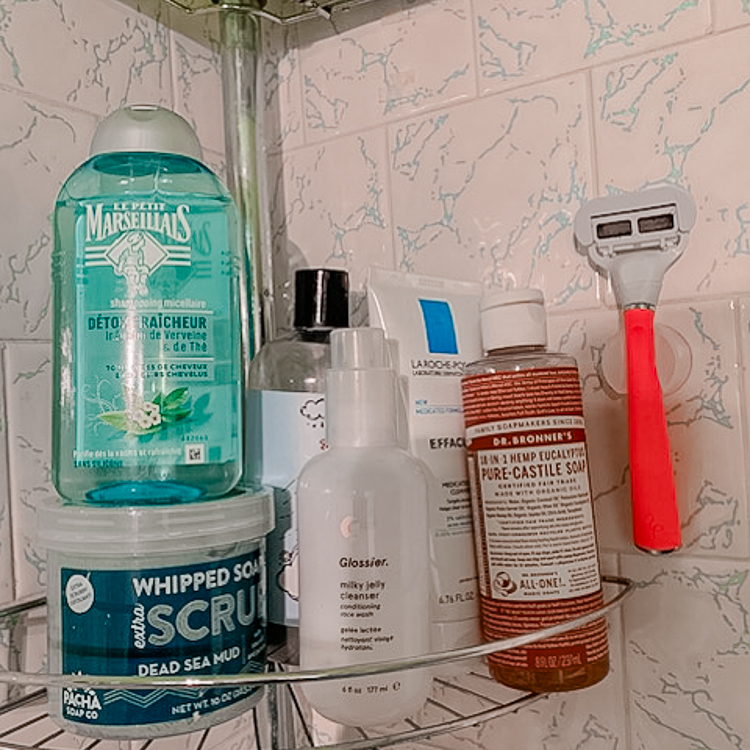 I rarely repurchase products because I love the thrill of trying something new, but the actual steps in my routine haven't changed in years. I always shower in the morning and shampoo my hair—no conditioner. I wash my face with Milky Jelly, which is the rare product I buy over and over again—I think I'm on my sixth or seventh bottle. For body, I use the Rad Soap Co body wash with tobacco and vetiver, and the Crystal Peel Microdermabrasion Bar soap on my butt. It’s the only thing that keeps breakouts at bay. And when I get out of the shower, I liberally apply Africa's Best body oil and start on my skincare.