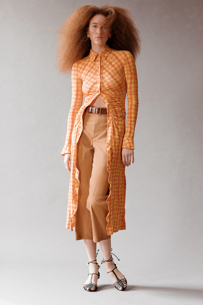 Look 1: Top and sandals from Altuzarra. Pants from Sea NY. Jewelry from Prounis.