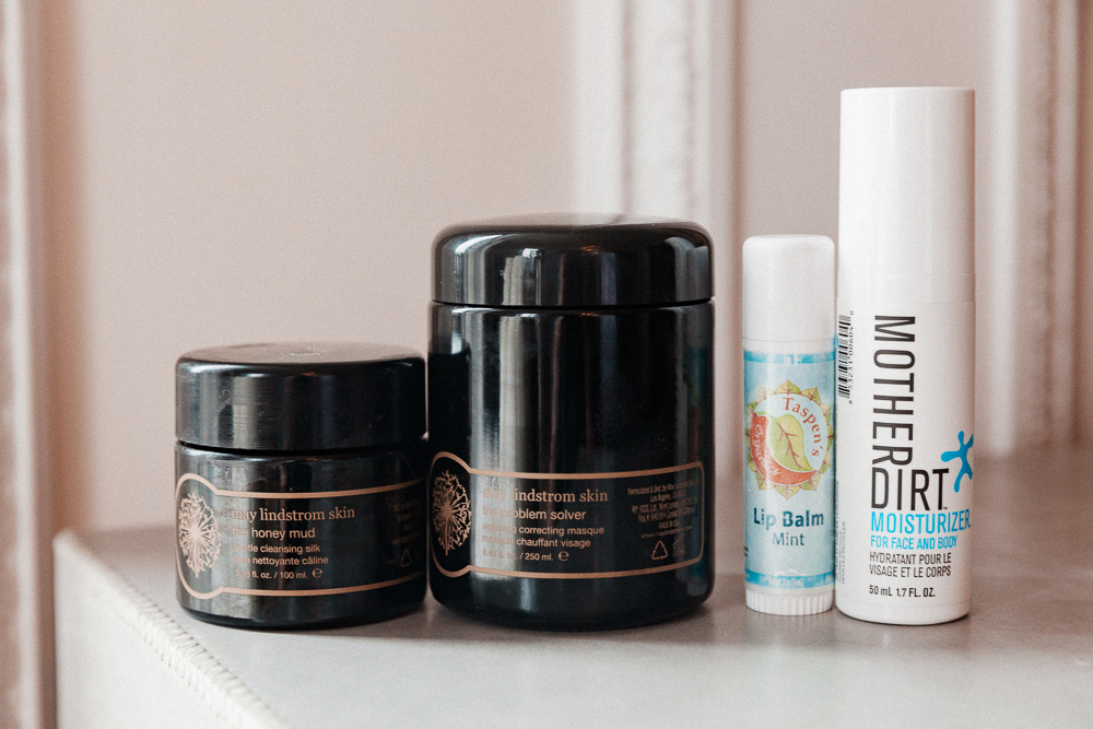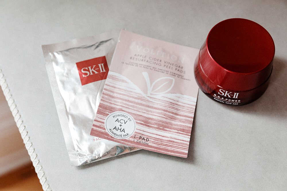 I really love the SK-II Facial Treatment Mask, as well as their overnight facial. Then, I have a Japanese serum that I use with my microcurrent machine, Rantania Mahalo. I used to use a lot of P50. Mother Dirt has a probiotic-based cleansing foam that I love, and then I use these Volition apple cider vinegar wipes. They sting your face, and I like that. I also like May Lindstrom’s mask, the chocolatey one. It smells delicious, very dessert-like. And then Eminence is a great brand. They have a clear probiotic mask that I love. I often do that in the shower, actually—it’s a great way to save time.