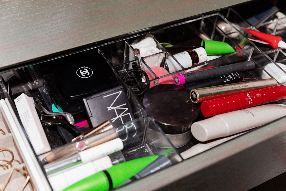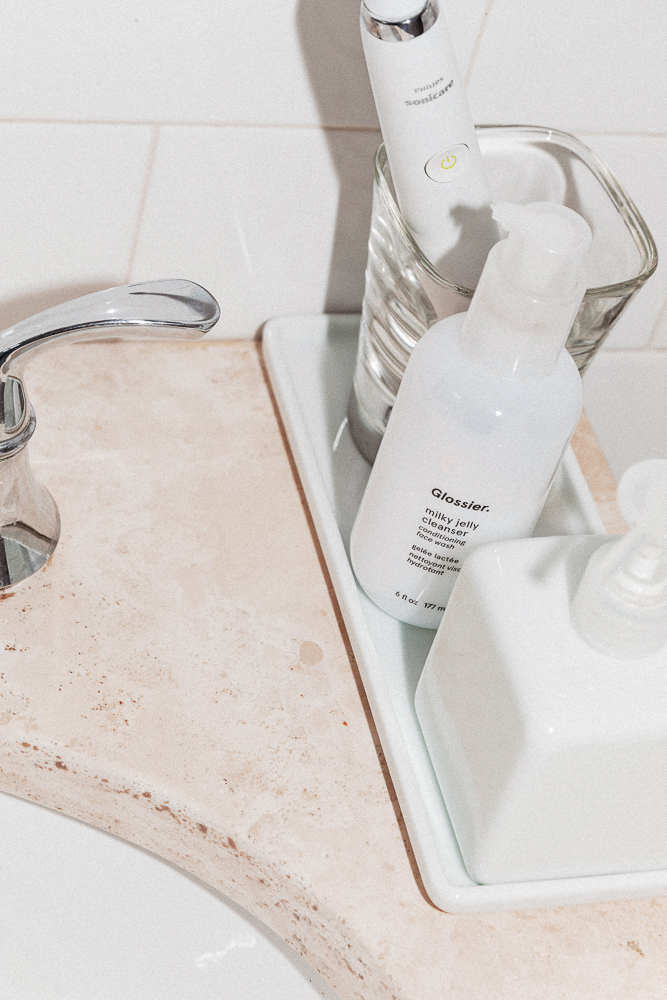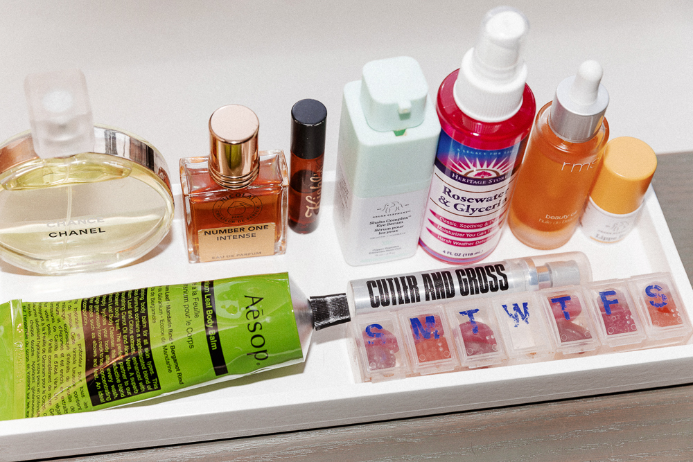 In the morning, I try to work out. I have Central Park right here, so I usually go for a run. Then I come back and shower, and sometimes I’ll use the Clarisonic in the shower if I’m really sweaty. After, I spray myself with Heritage Rosewater that I got at Whole Foods—I buy a lot of stuff at Whole Foods for my beauty routine. Recently I started using Honest Beauty Oil, which I really like. I never moisturized with oil before, but I think I’ll never go back. It feels so good, it absorbs really quickly, and it feels like real hydration. Then I’ll put the Supergoop Unseen Sunscreen on, because it’s a good primer. It’s super light, and it has a matte finish.