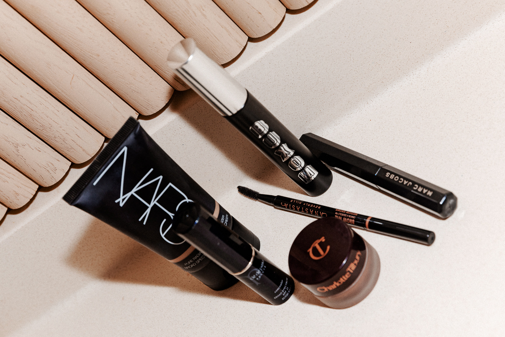 I try not to tweeze my eyebrows much myself, but I’ll use Anastasia Brow Wiz and Boy Brow. I love a good, full brow. Usually, that’s it. If I want to do more, I’ve been using Cloud Paint in Dusk on my eyelids and my cheeks. Or I’ll use Charlotte Tilbury Eyes to Mesmerize on my eyes—this one is Marie Antoinette, and I have the other one that’s more gold, too. Other people are usually doing my makeup, so I’m not practiced at it—everything has to be fingerpainting for me. Just smudgy, washy, watercolor-y—that’s what I do on myself.